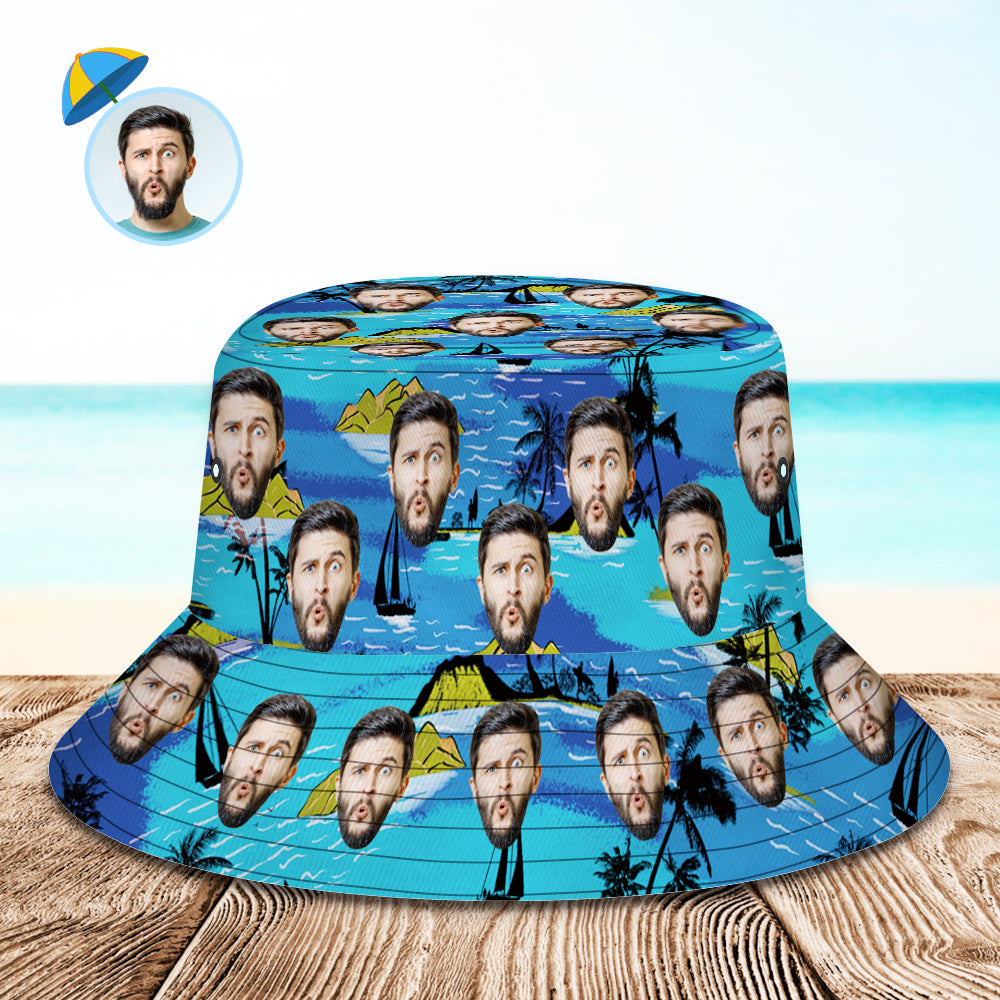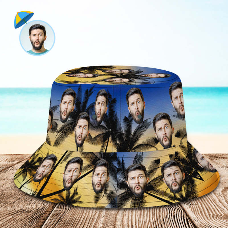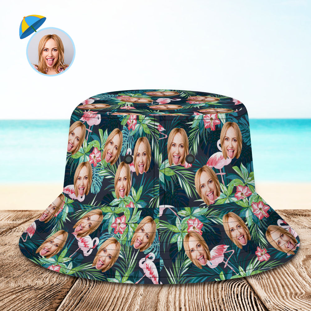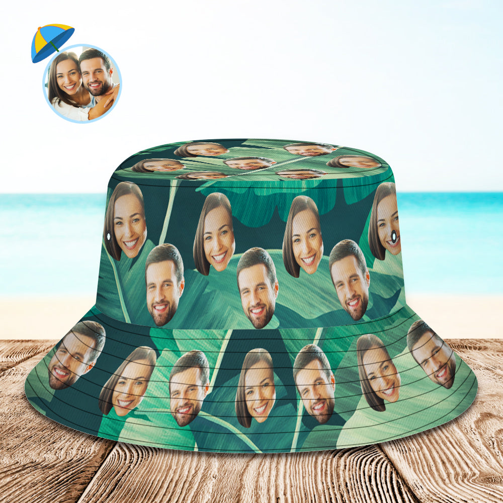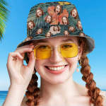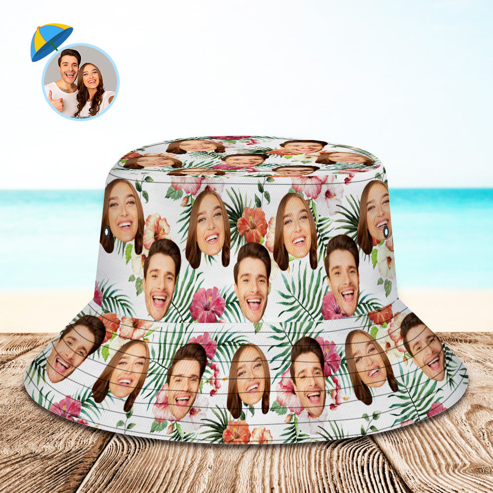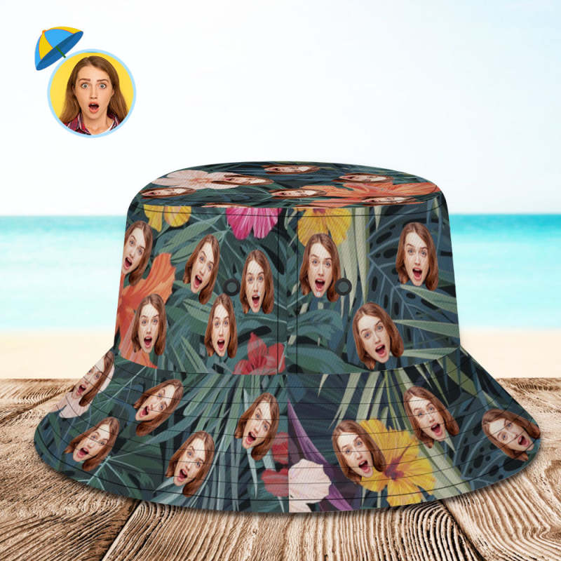 Personalized Bucket Hat with Faces Hawaiian Style Unisex Fisherman Hat 8 Styles 3D Online Preview Flowers & Leaves