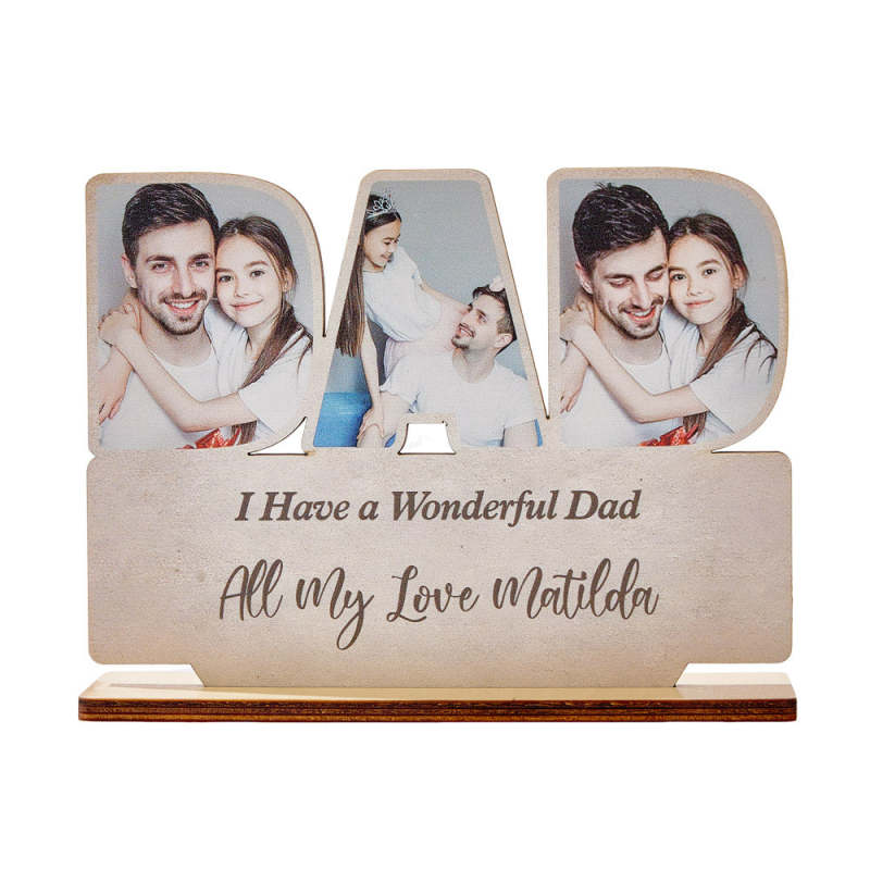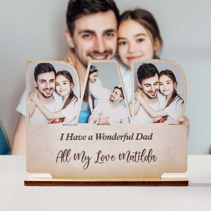 This personalized wooden plaque is the perfect Father's Day gift for Dad. Made with high-quality wood, it features a custom photo and a heartfelt message. Show your love and appreciation with this unique and sentimental plaque.