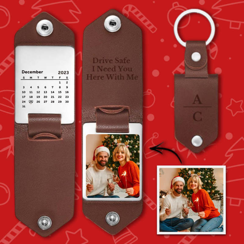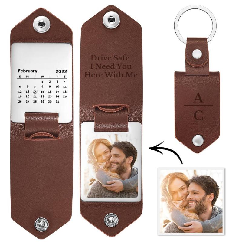Personalized Date Keychain with Photo Calendar Christmas Gifts for Boyfriend Husband