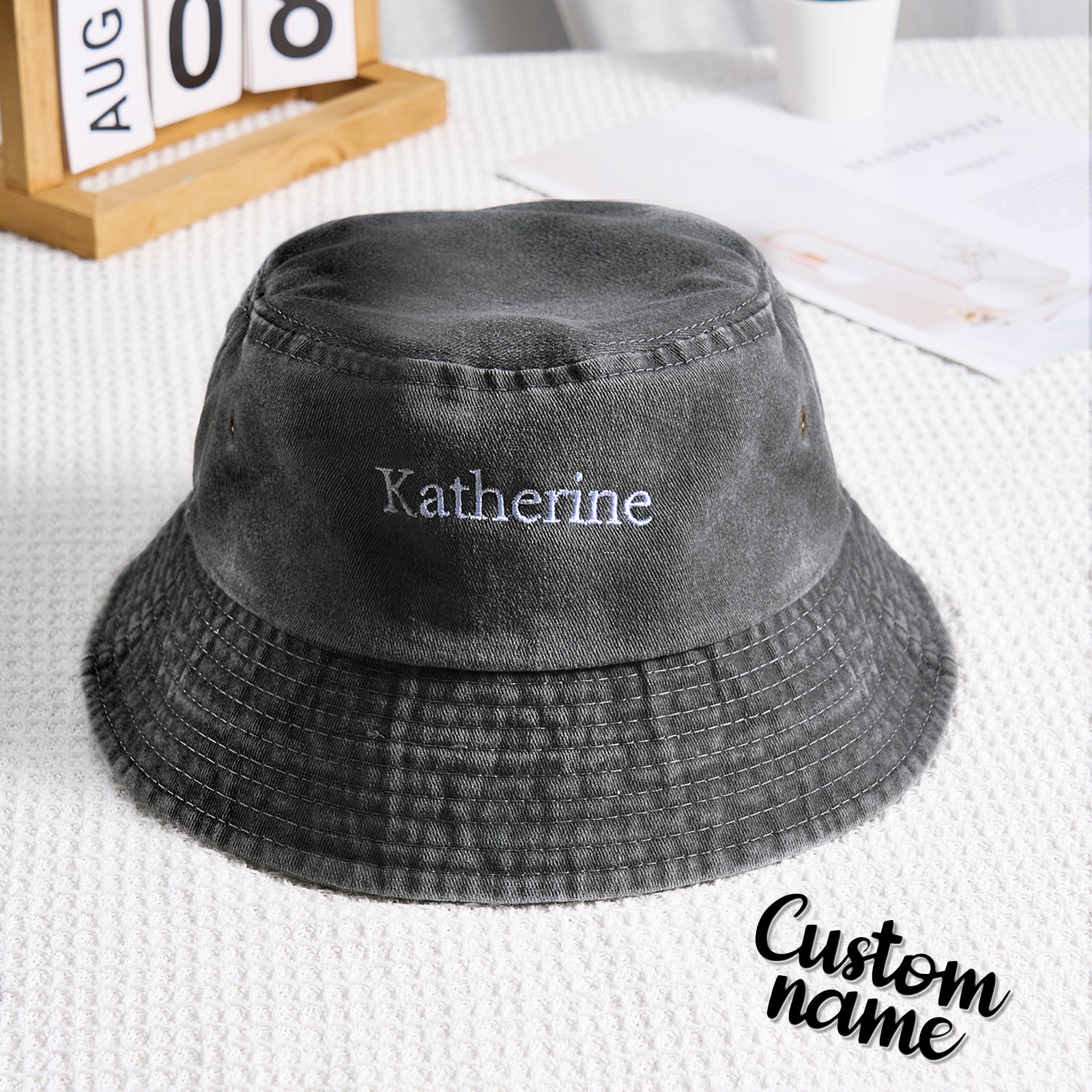 Personalized Denim Bucket Hat Custom Name Embroidery Design Gift for Friends