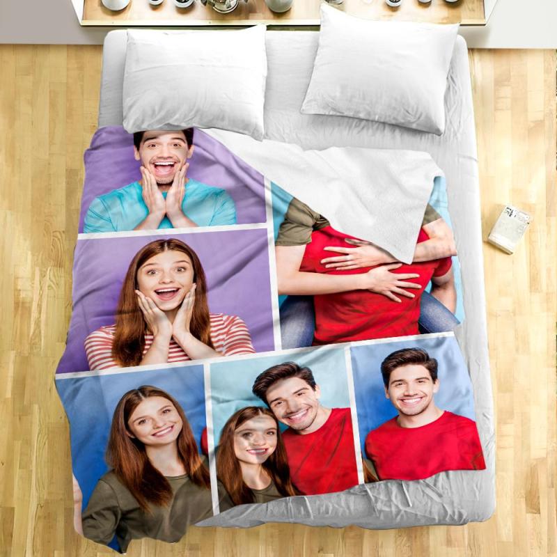 Personalized Engraved Photo Collage Blanket Soft Flannel Gift for Family