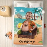Personalized Face Photo Blanket with Custom Name for Dad Seaside Treasure Gift for Him