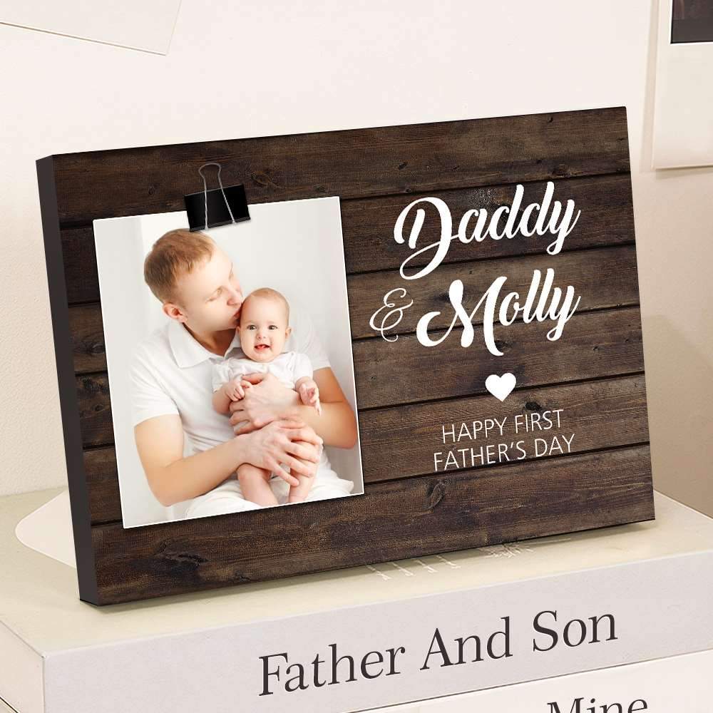Happy First Father's Day Gift Name & Photo Engraved Picture Frame Gift