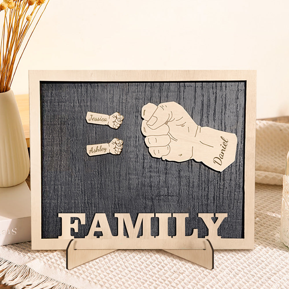Personalized Fists Wooden Plaques Decor Sign Family Names Desk Plaque Gifts for Family