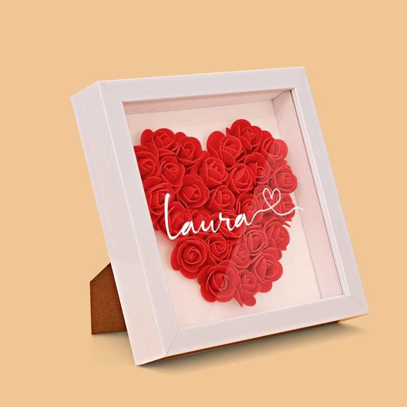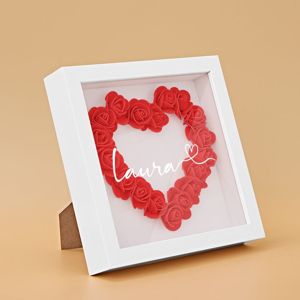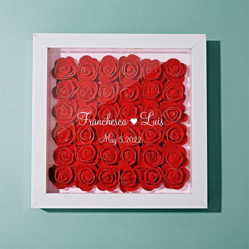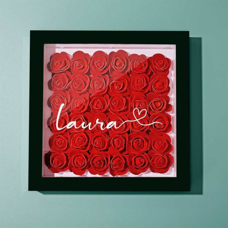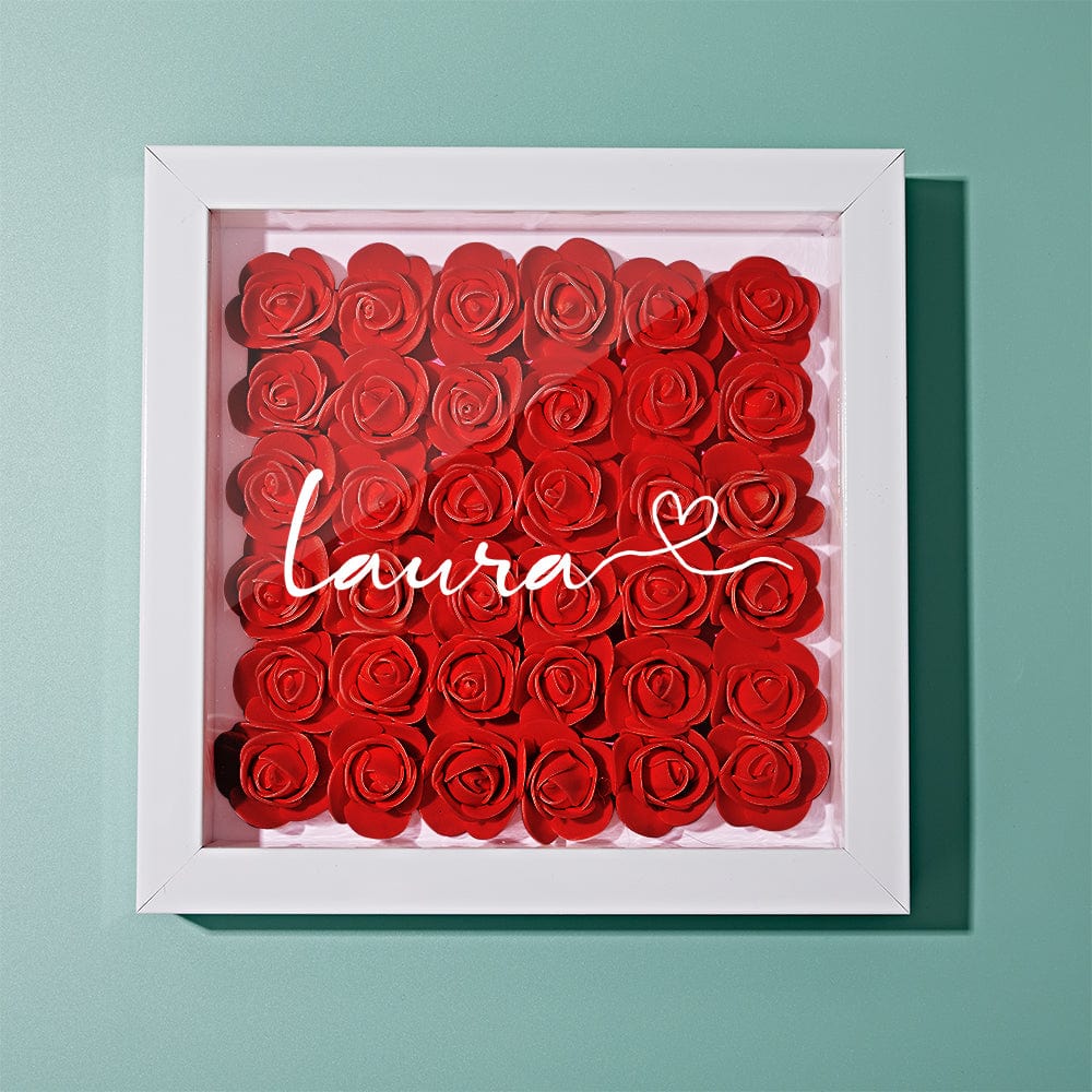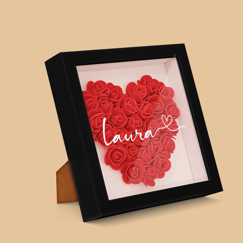 Surprise your loved one with this beautiful, personalized flower shadow box. You can customize it with your name to keep your special memories. Show your love with our beautiful roses with varied styles and colors available.