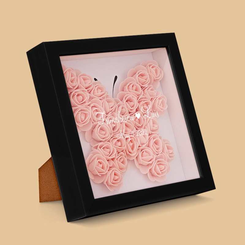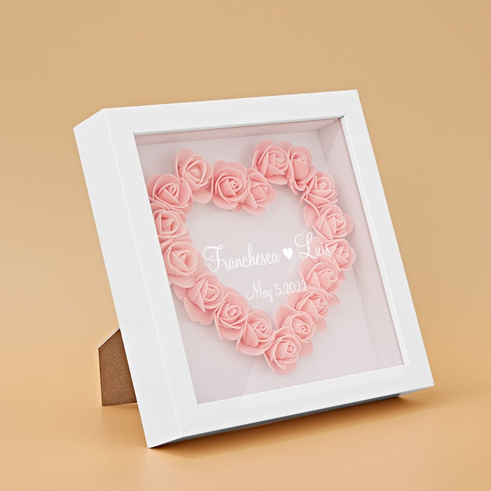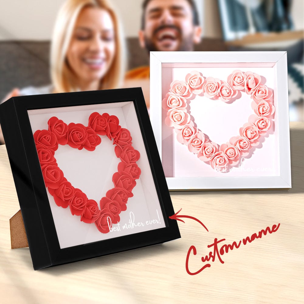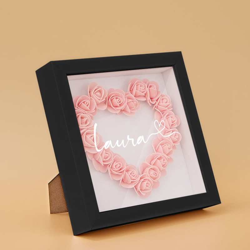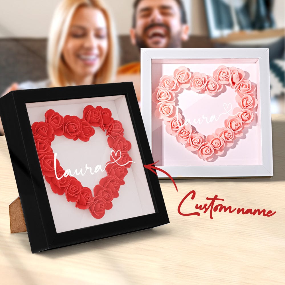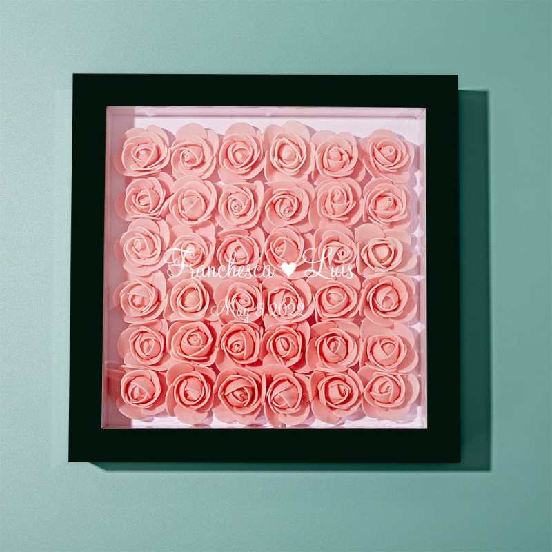 Surprise your loved one with this beautiful, personalized flower shadow box. You can customize it with your name to keep your special memories. Show your love with our beautiful roses with varied styles and colors available.