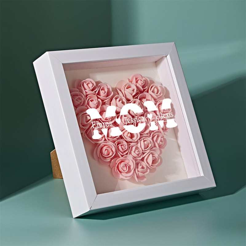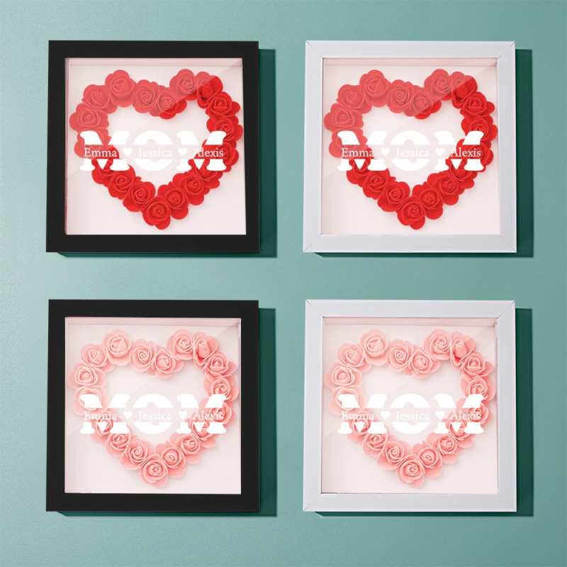 Personalized Flower Shadow Box With 3 Names Mother's Day Gifts for Mom