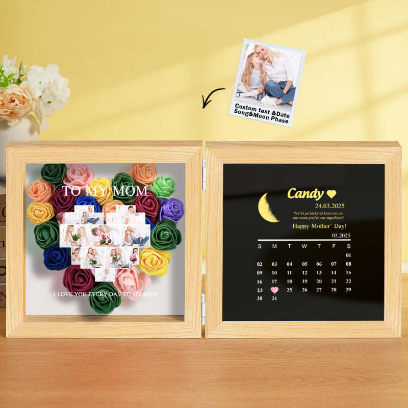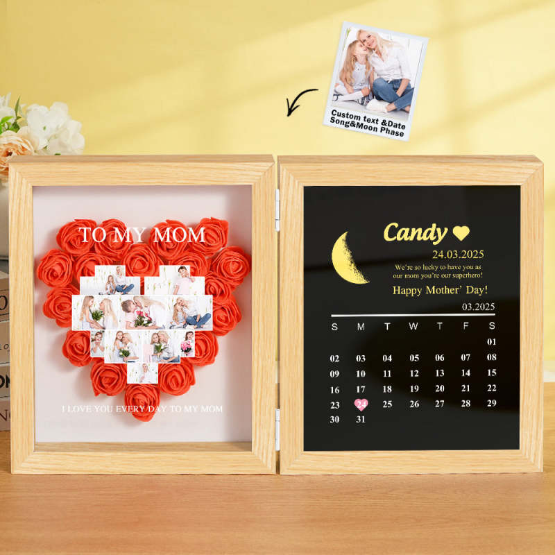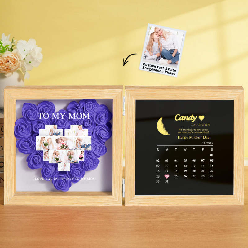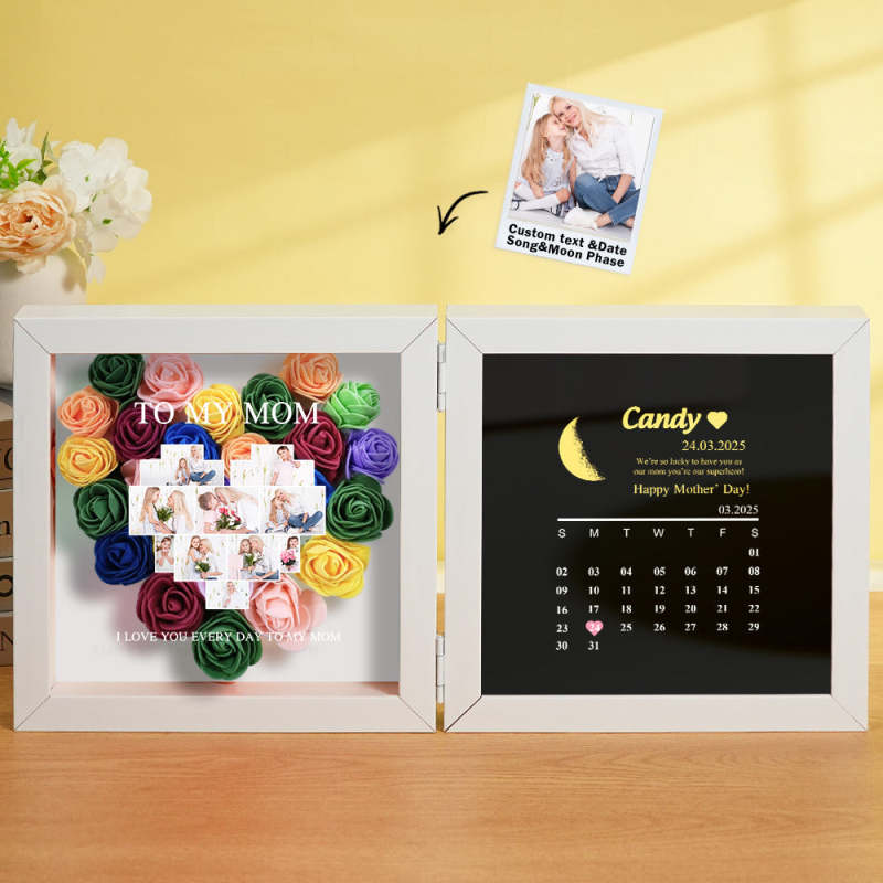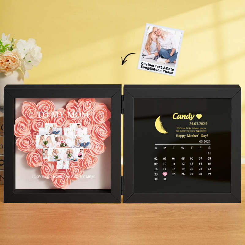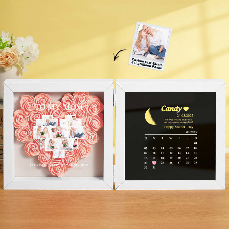 Personalized Flower Shadow Box with Moon Phase Calendar Hearts Flower Box Mother's Day Gift for Mom