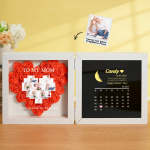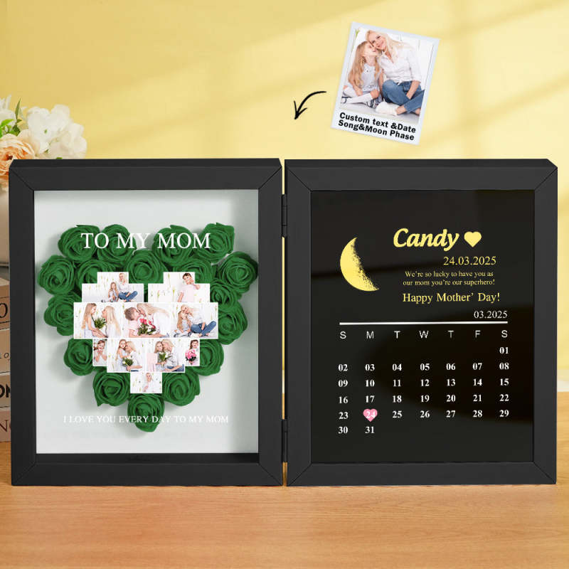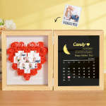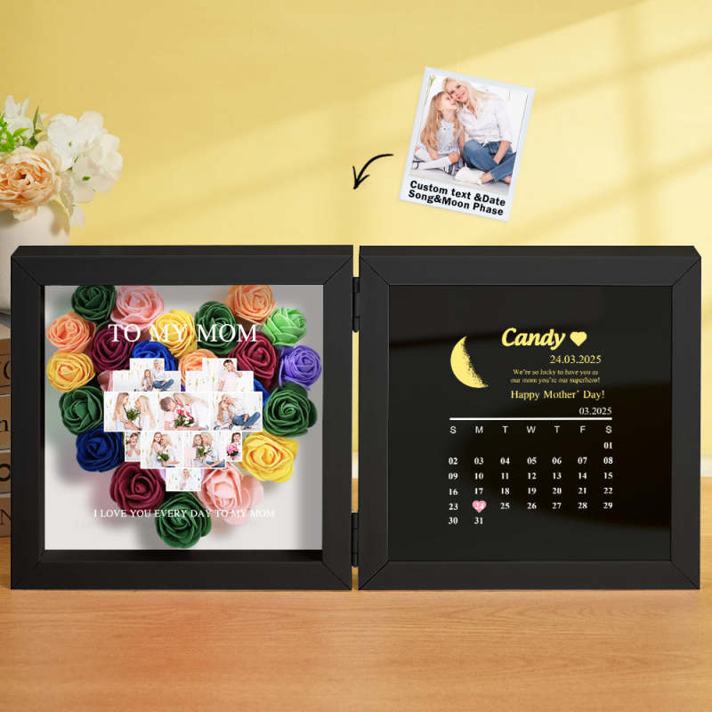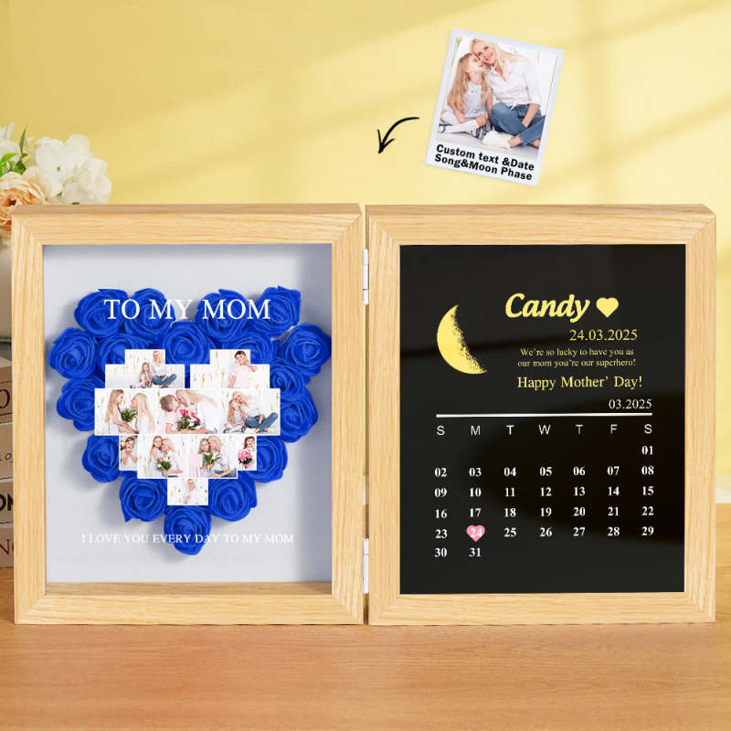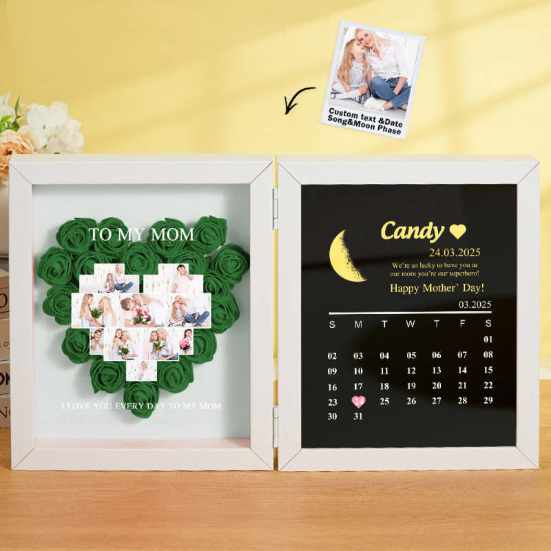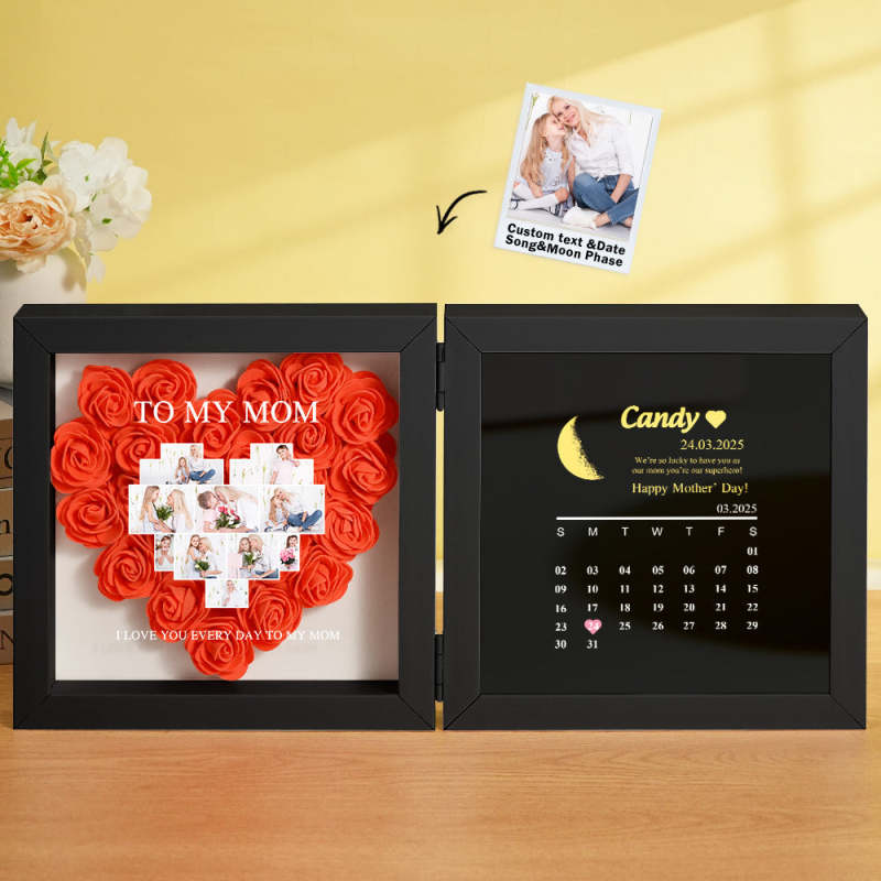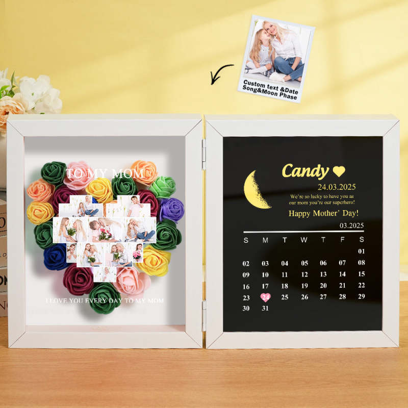 Personalized Flower Shadow Box with Moon Phase Calendar Hearts Flower Box Mother's Day Gift for Mom