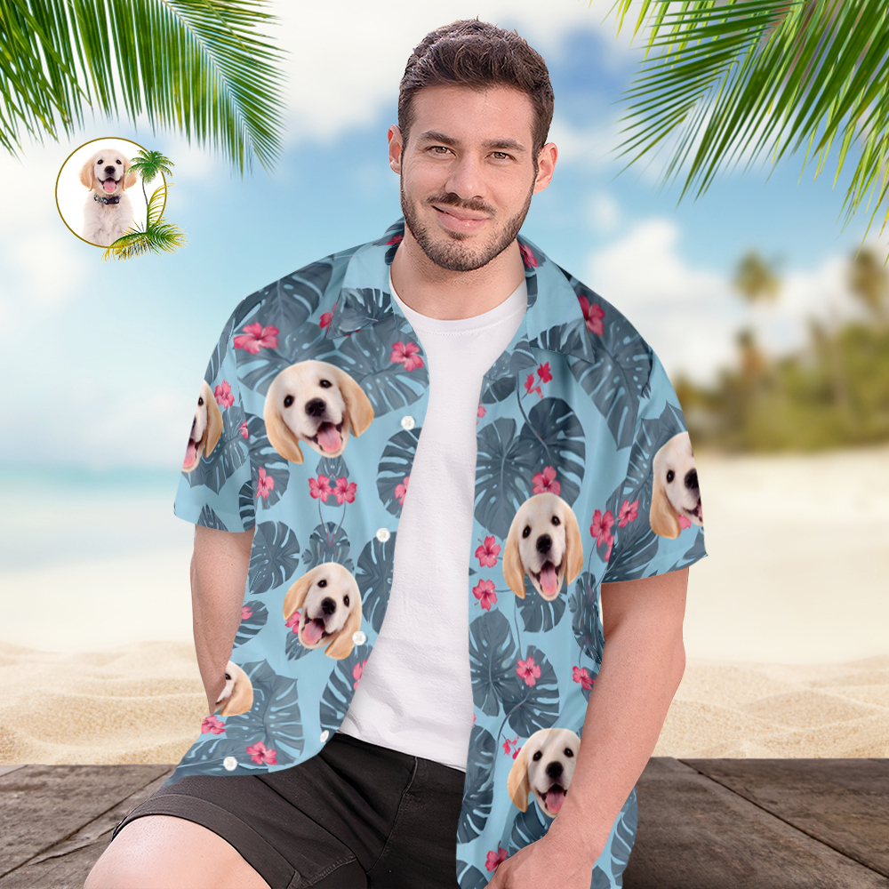 Personalized Men's Face Hawaiian Shirts Vacation Party Gifts - Leaves