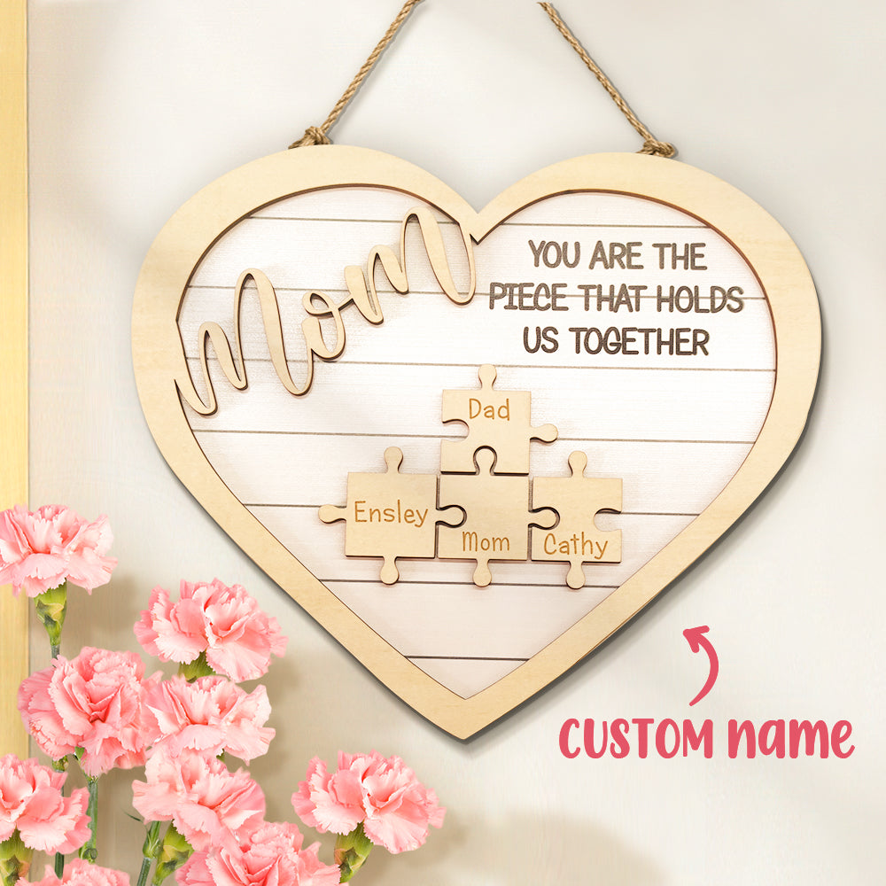 Personalized Mom You Are the Piece That Holds Us Together Puzzle Piece Sign Gifts for Mom