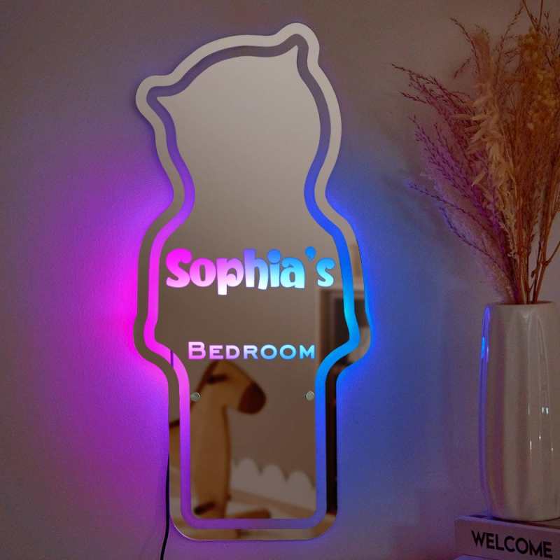 Personalized Name Mirror Light Children's Bedroom Bear Gift
