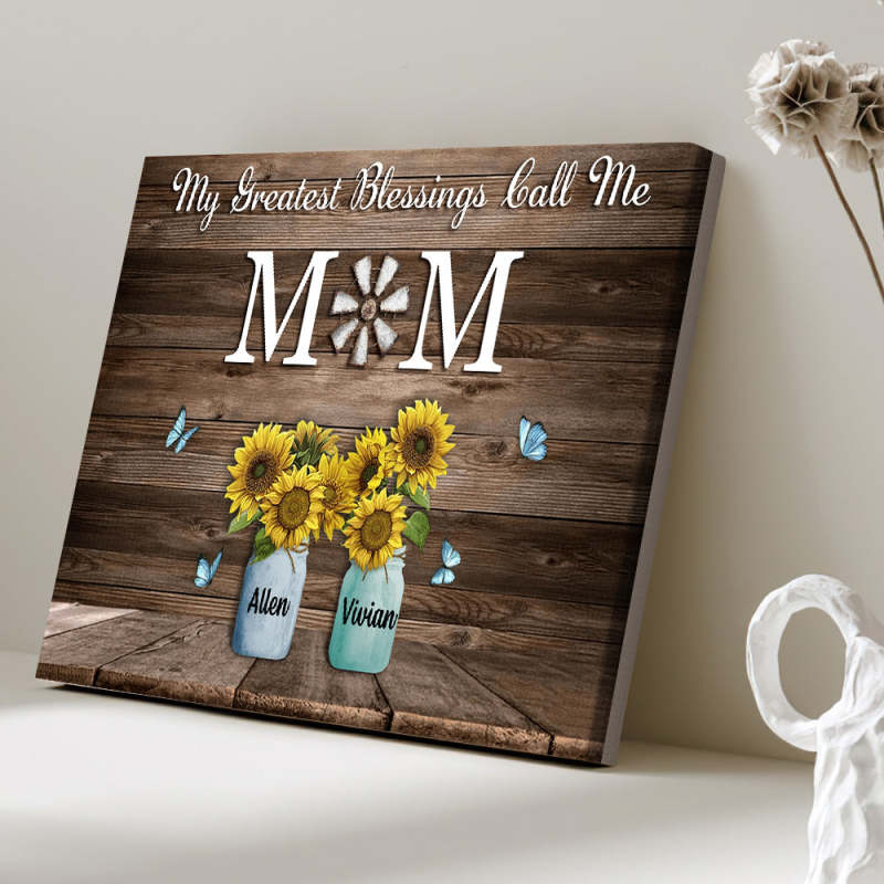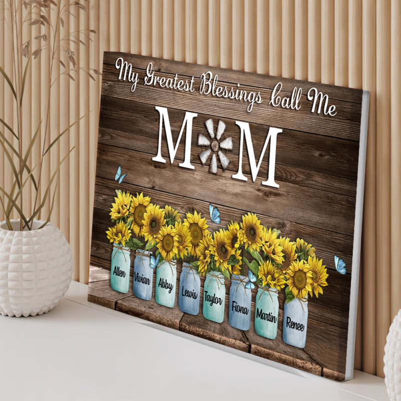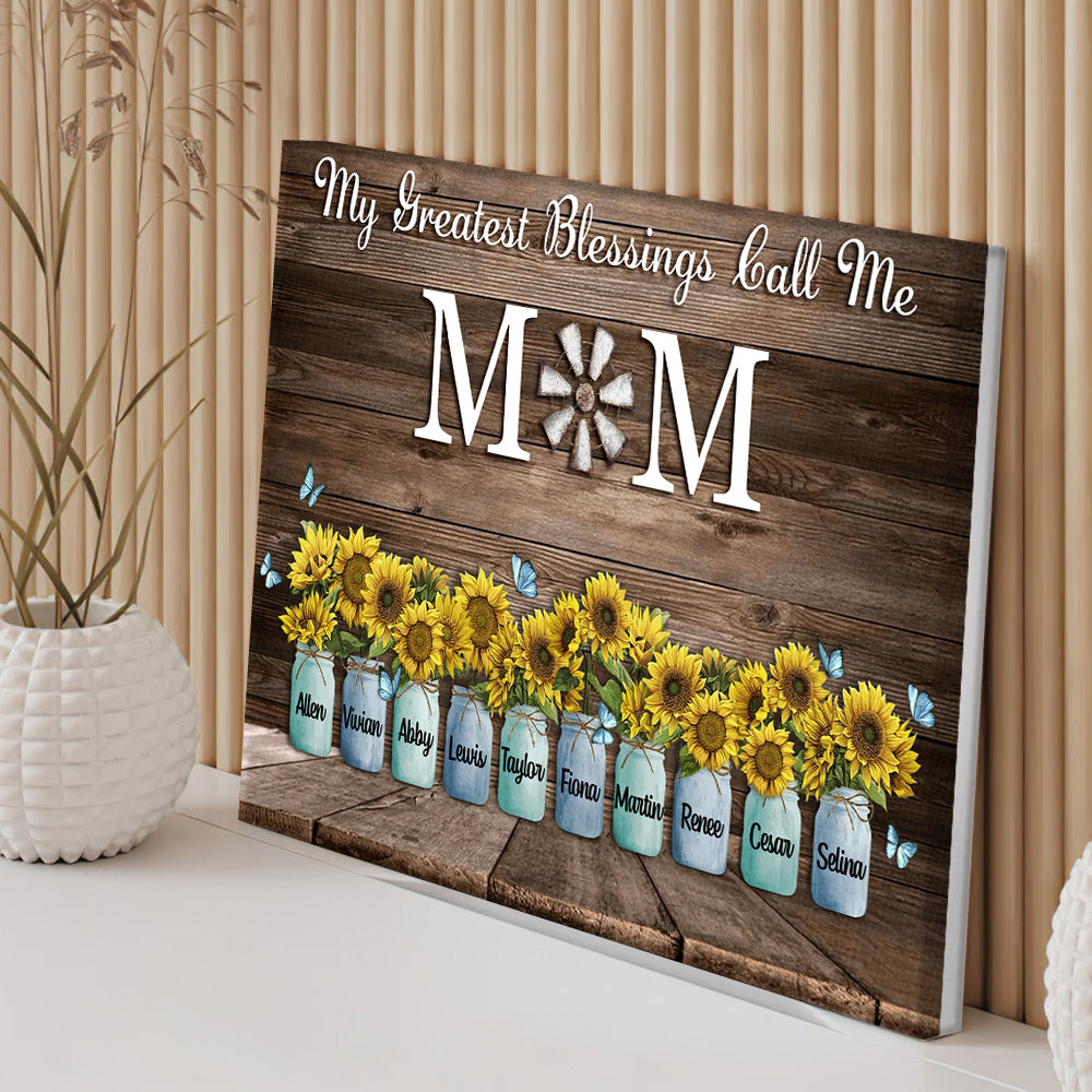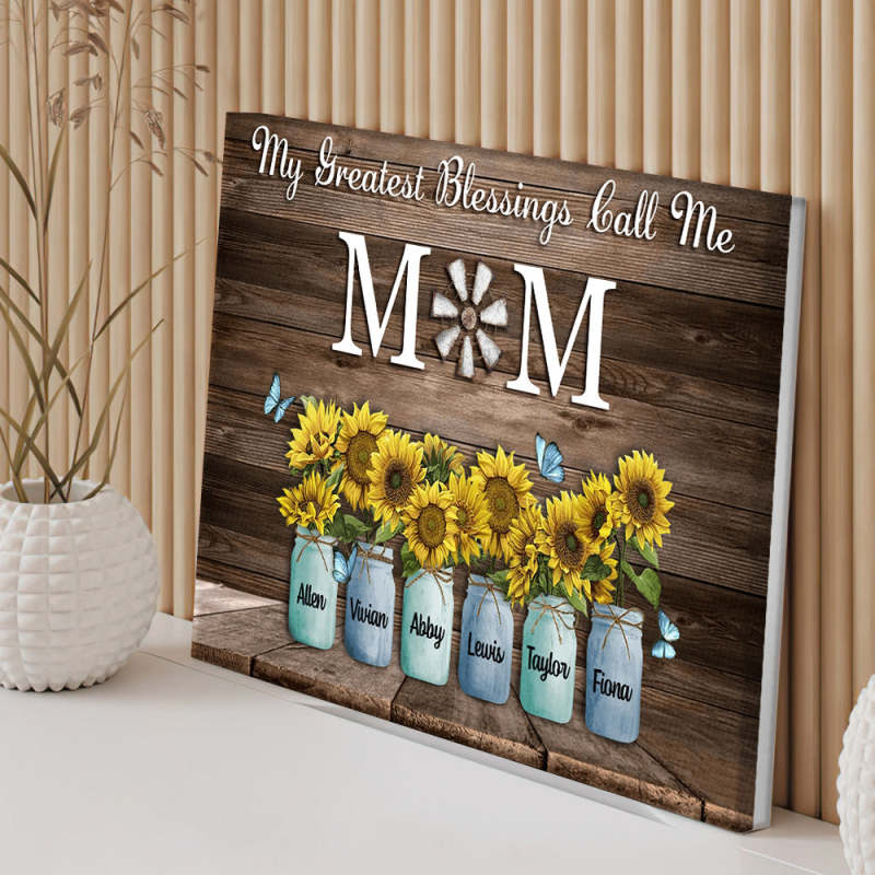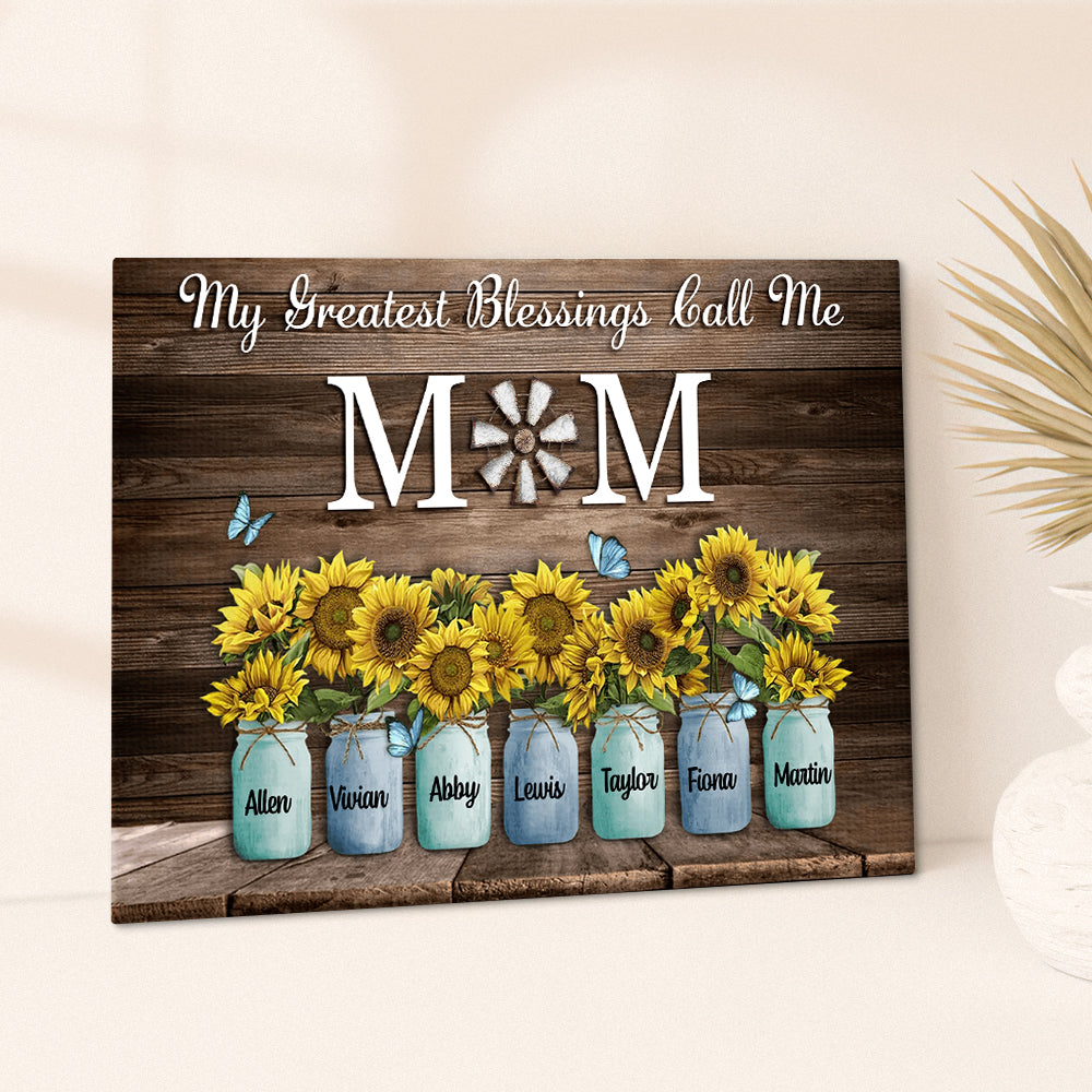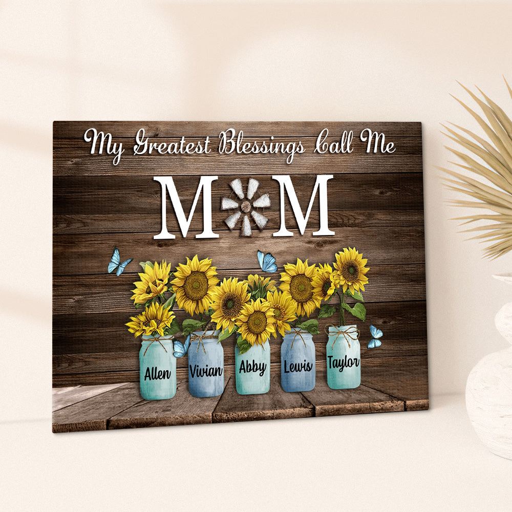 Personalized Name Sunflowers Canvas My Greatest Blessings Call Me Mom Wall Art Canvas Mother's Day Gifts