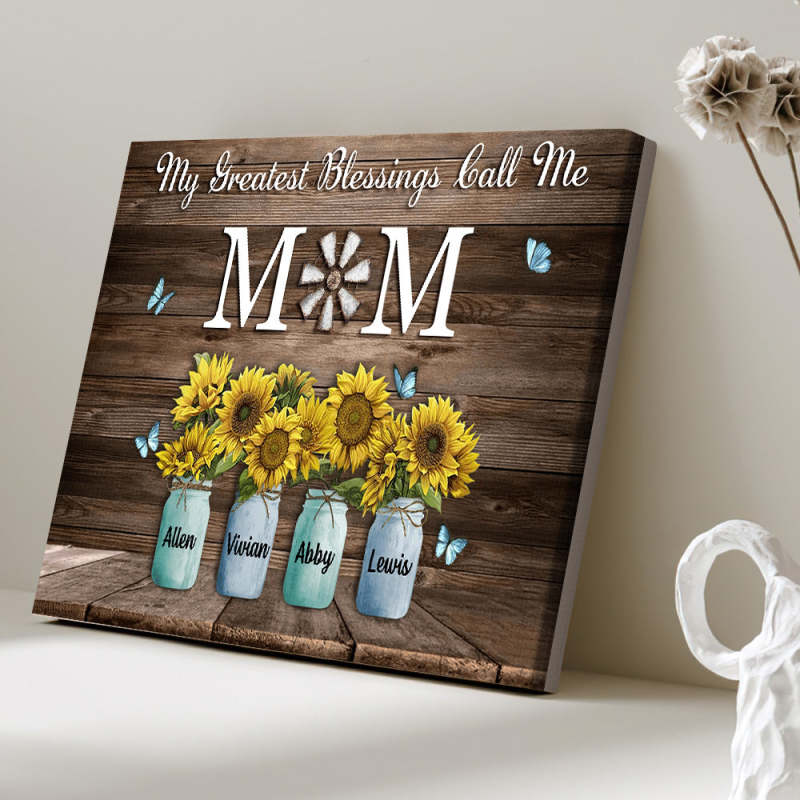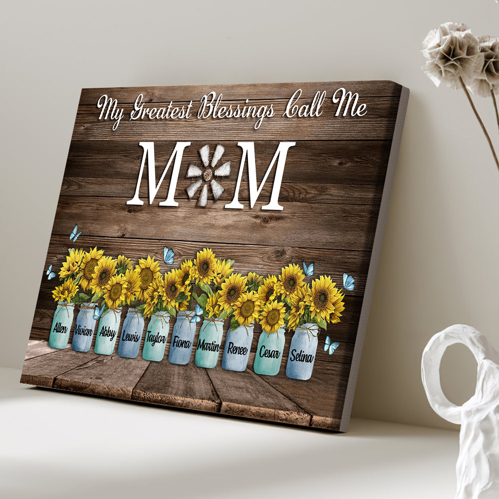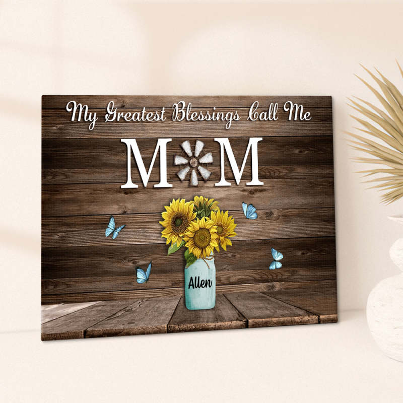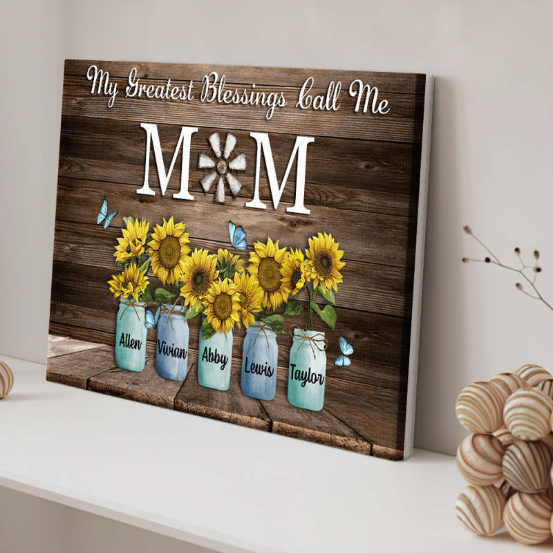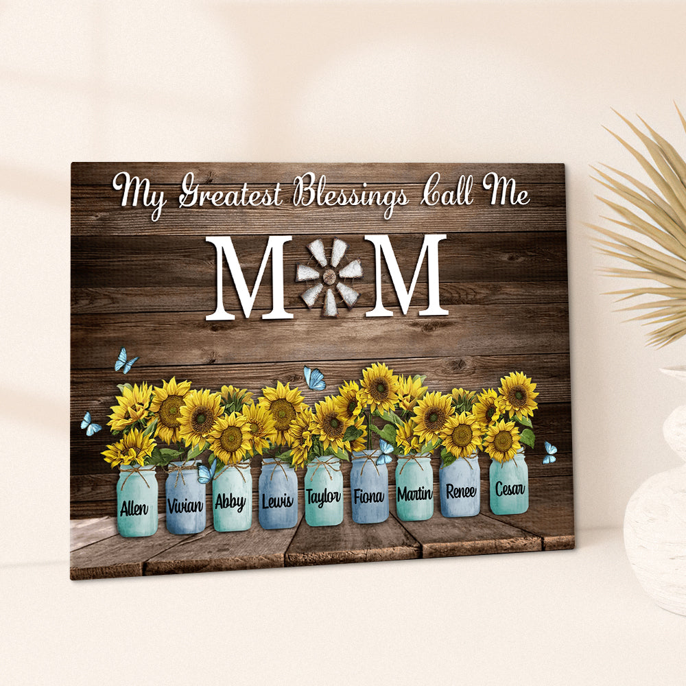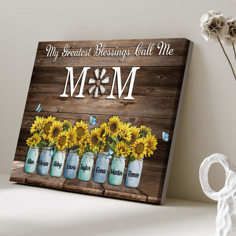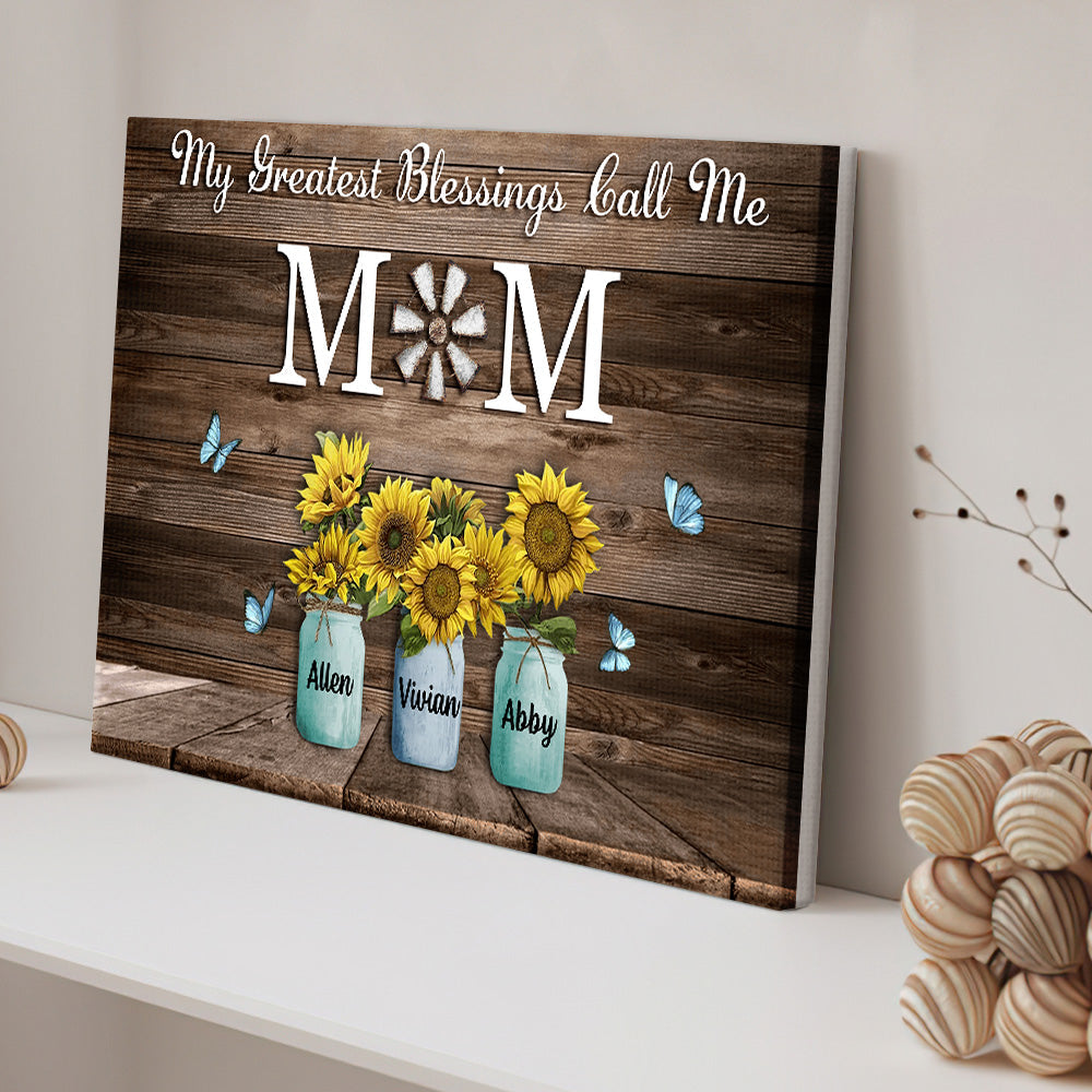 Personalized Name Sunflowers Canvas My Greatest Blessings Call Me Mom Wall Art Canvas Mother's Day Gifts