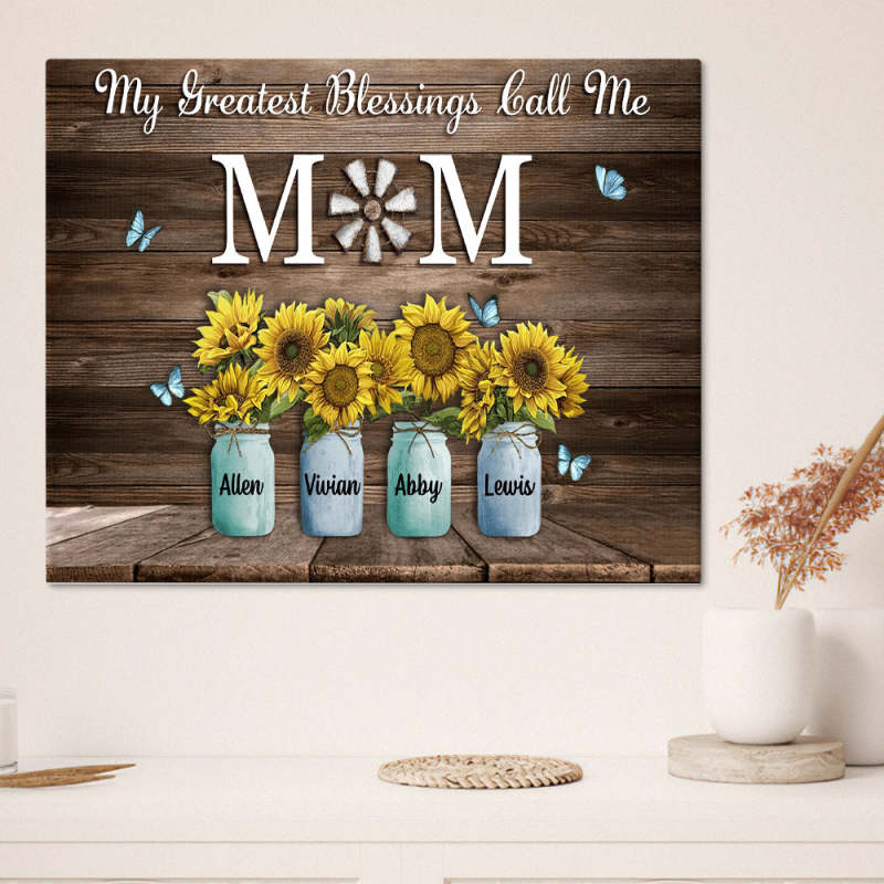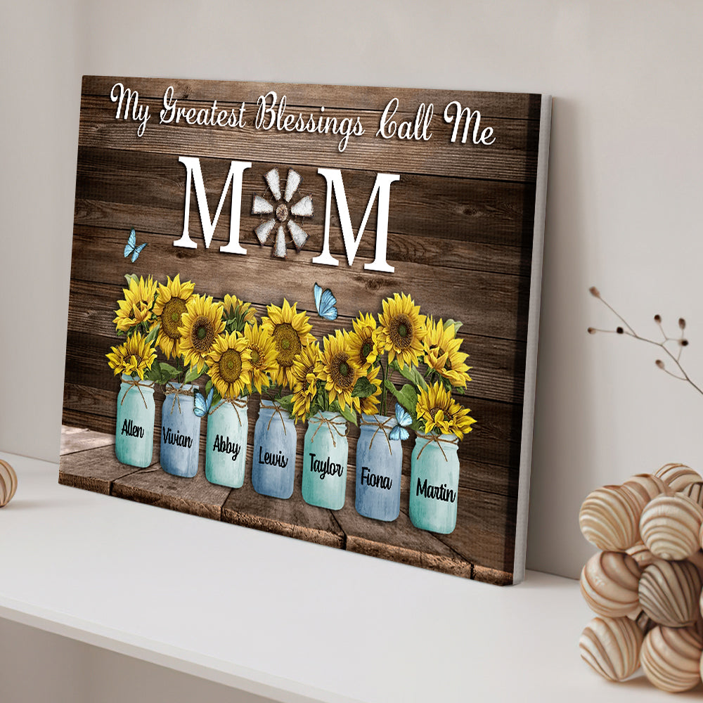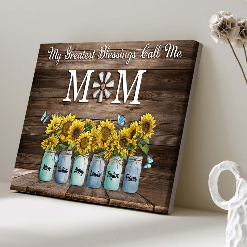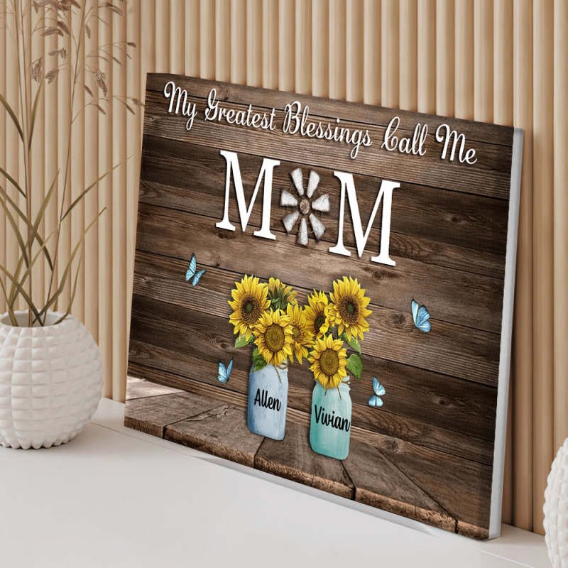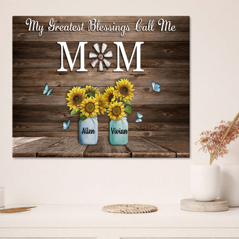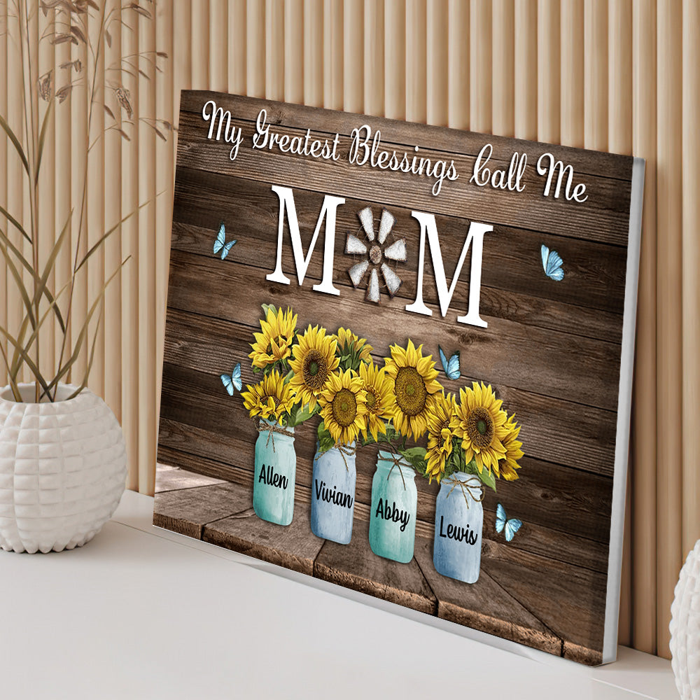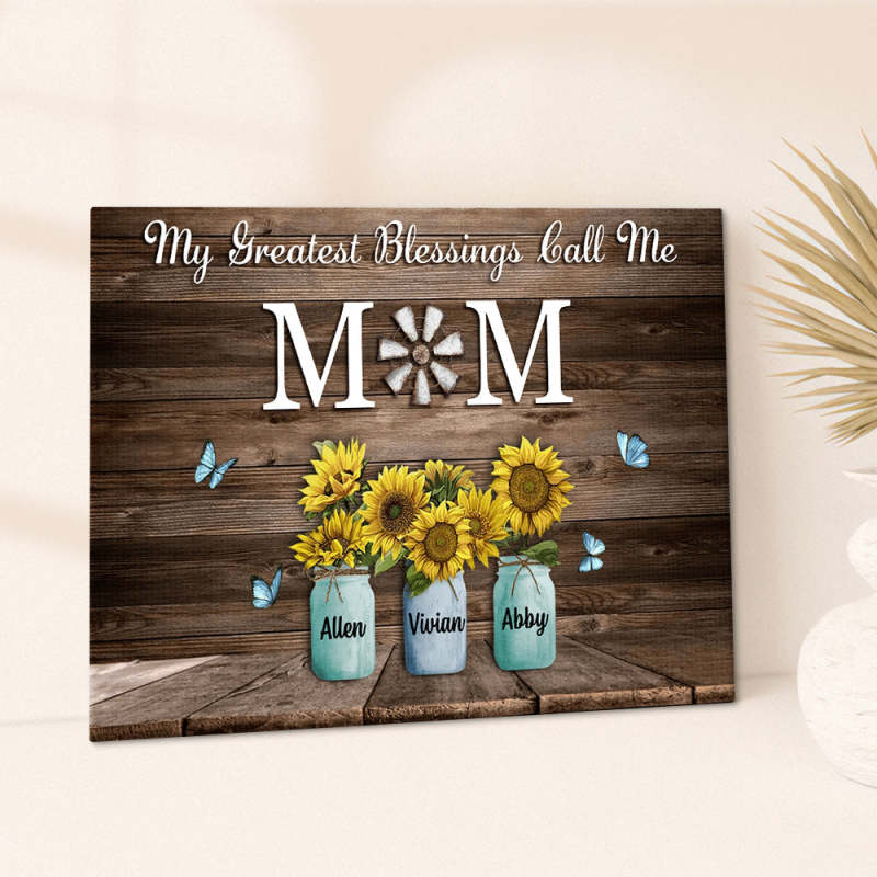 Personalized Name Sunflowers Canvas My Greatest Blessings Call Me Mom Wall Art Canvas Mother's Day Gifts