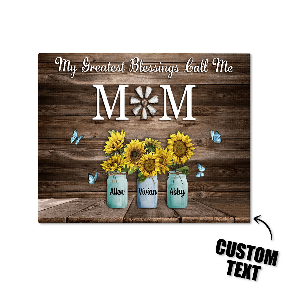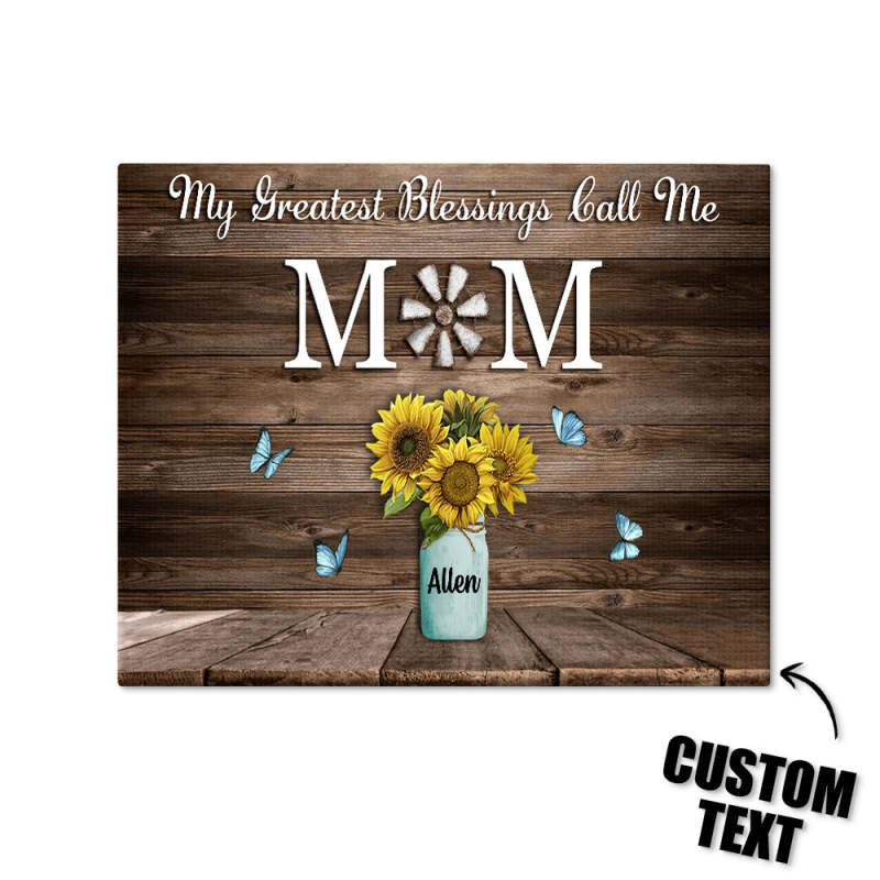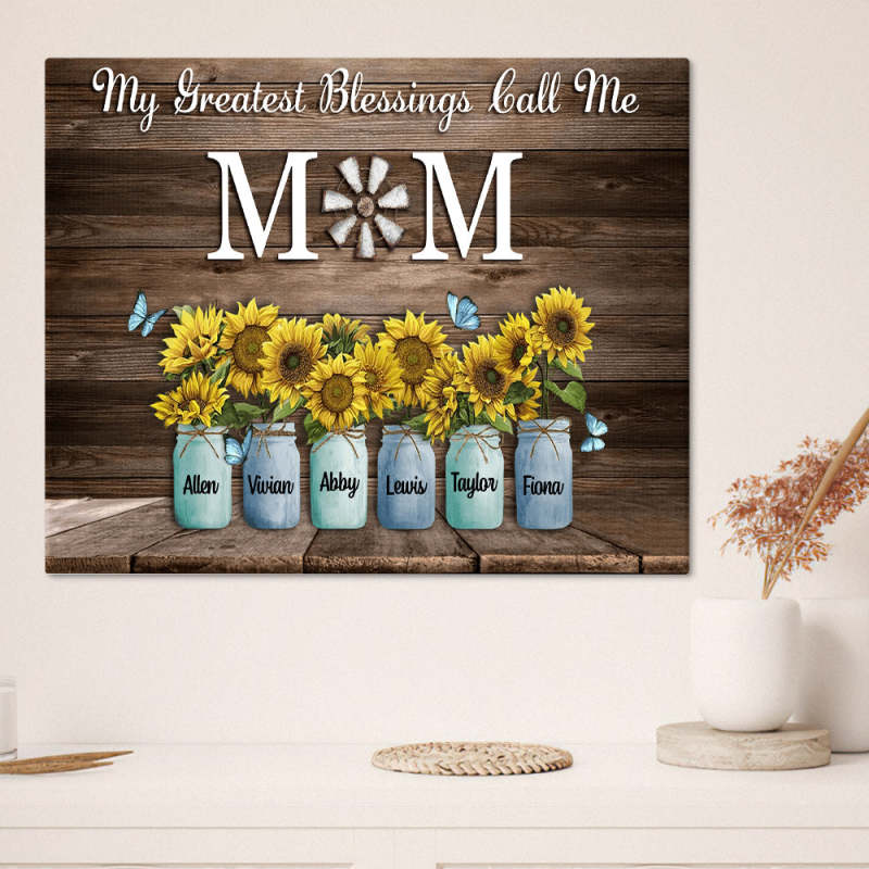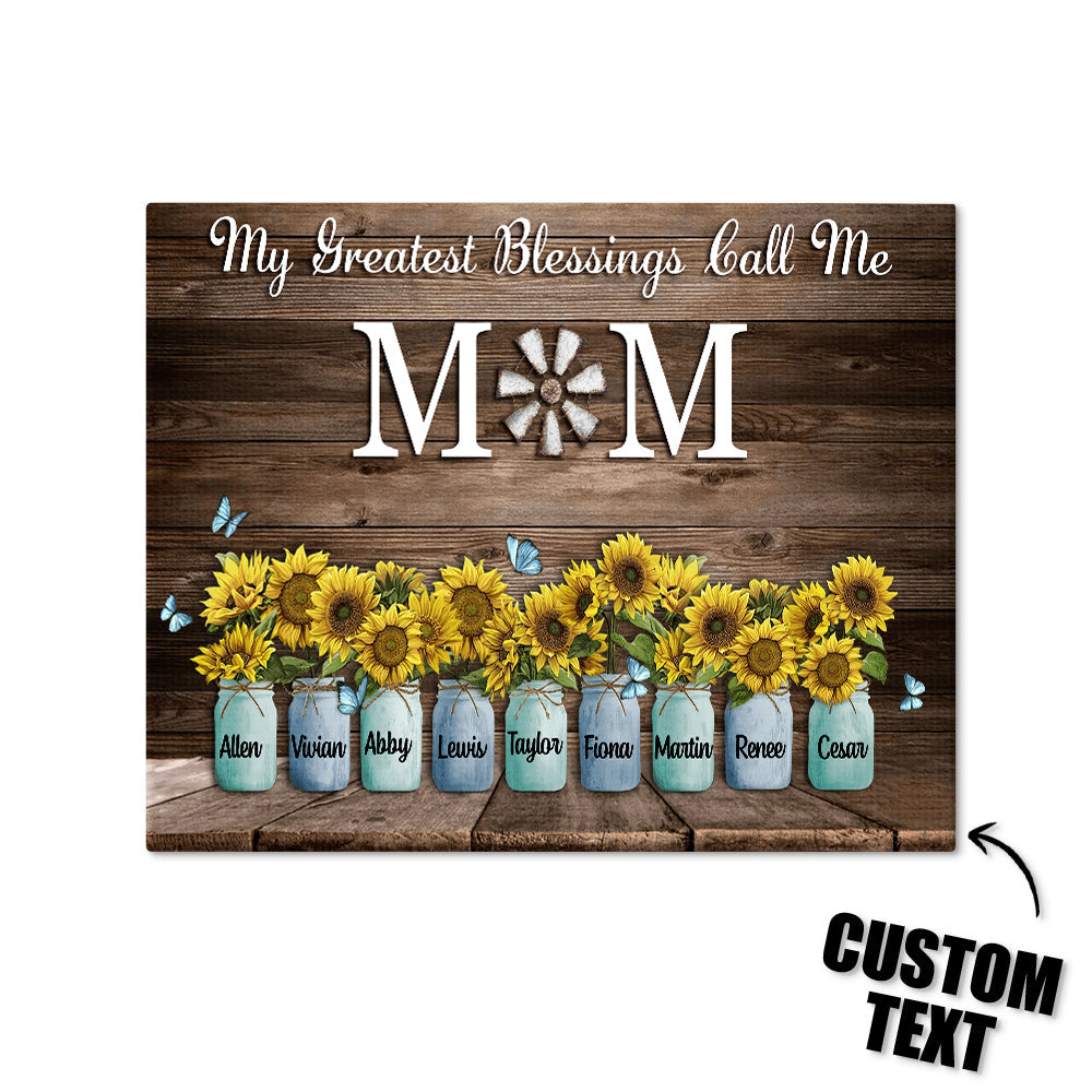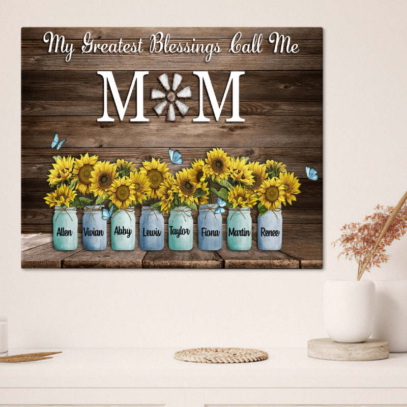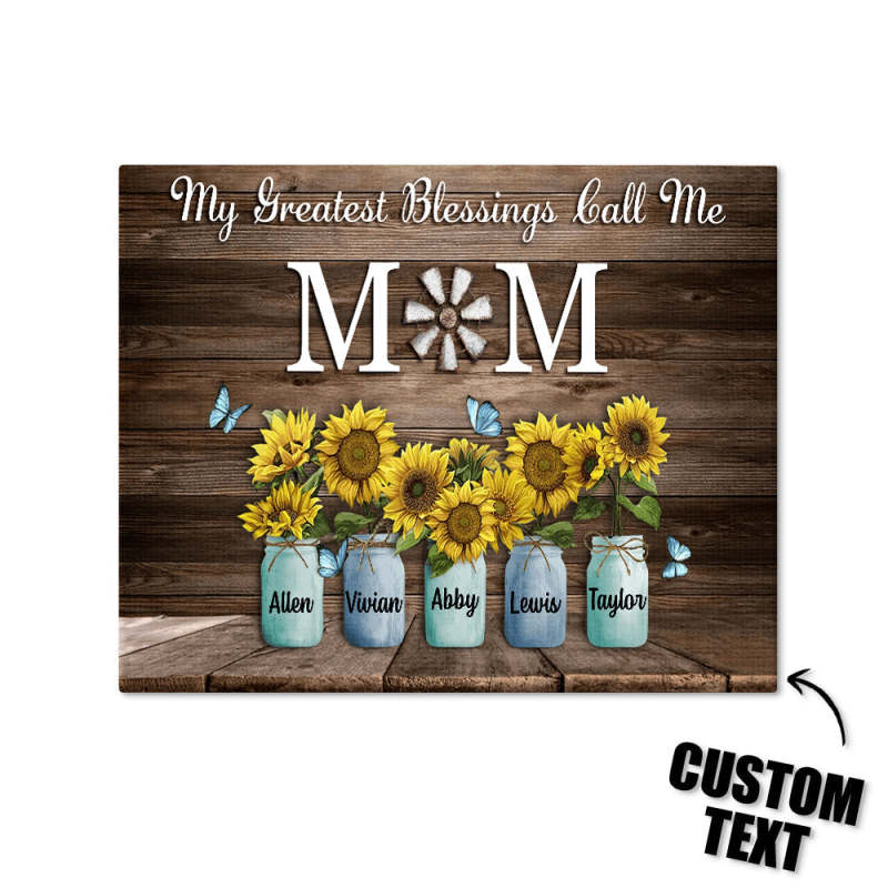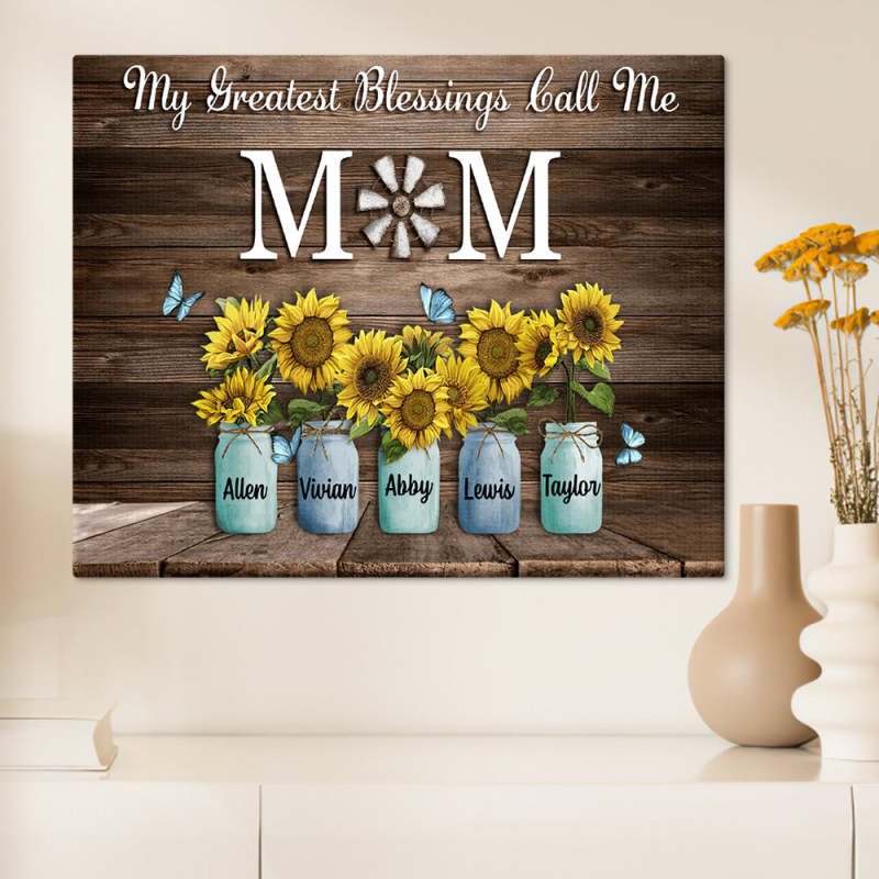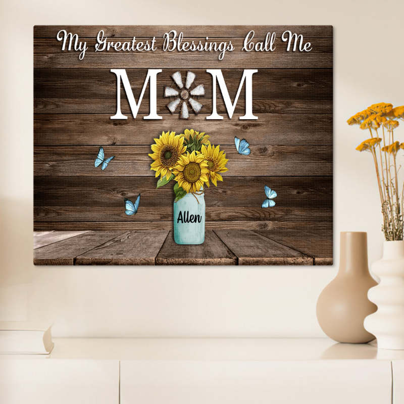 Personalized Name Sunflowers Canvas My Greatest Blessings Call Me Mom Wall Art Canvas Mother's Day Gifts