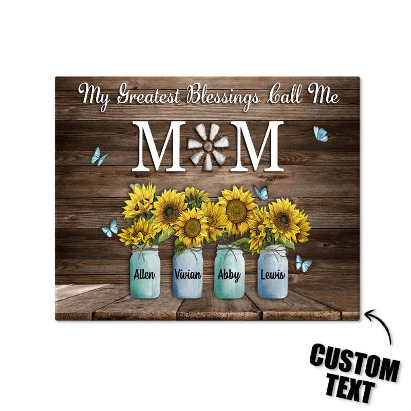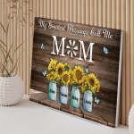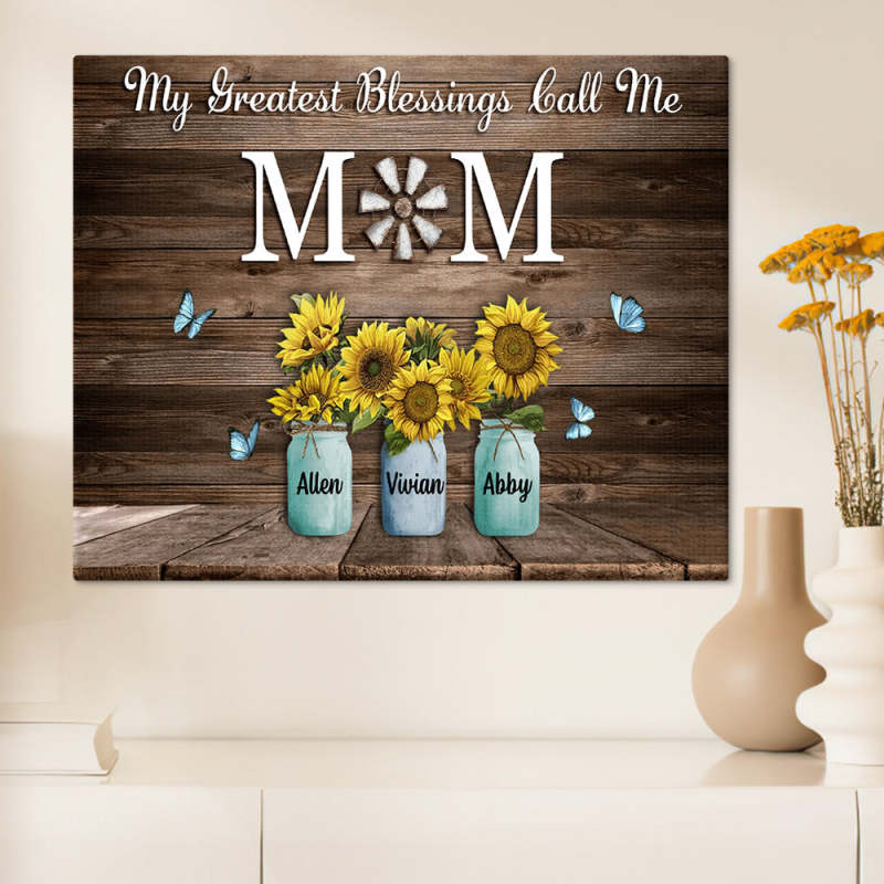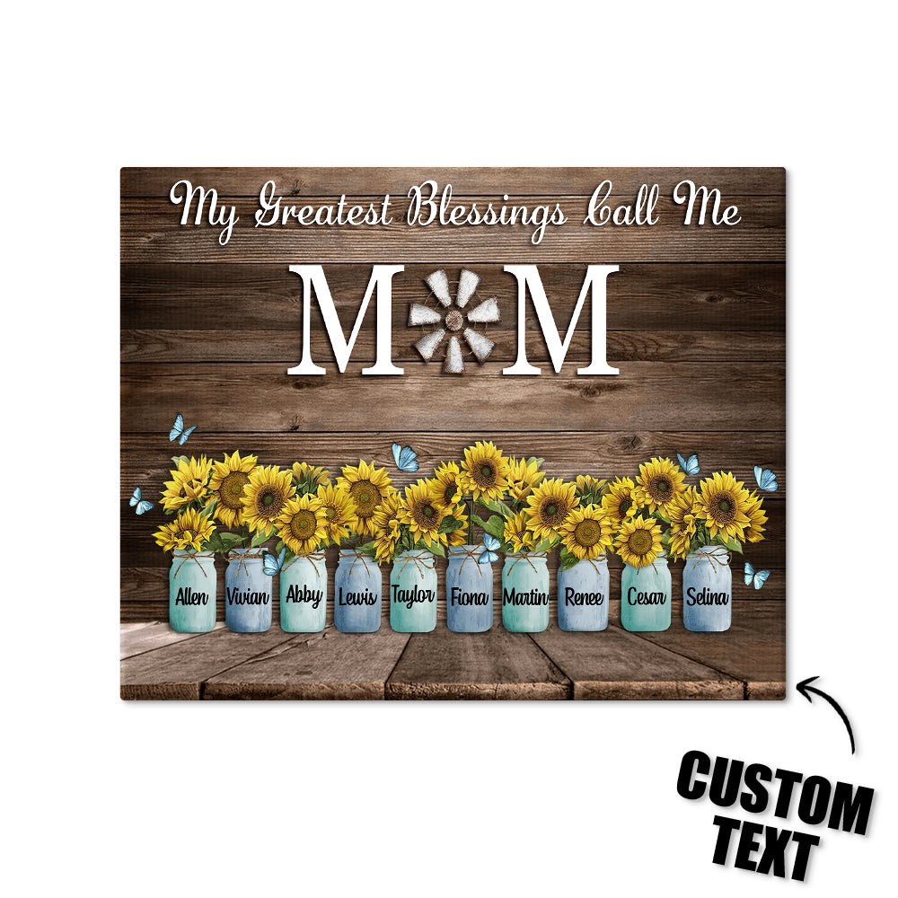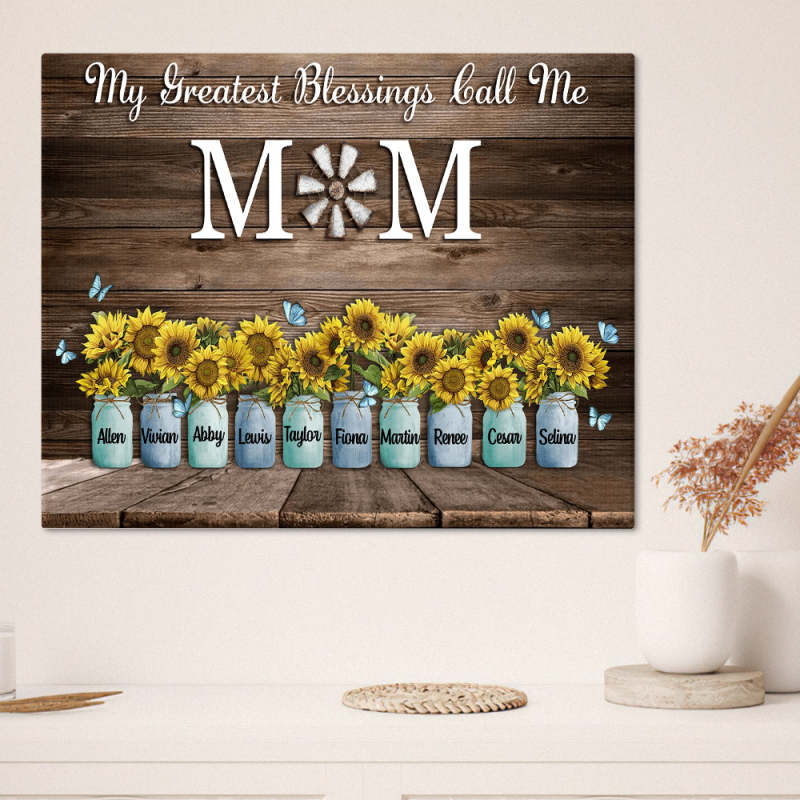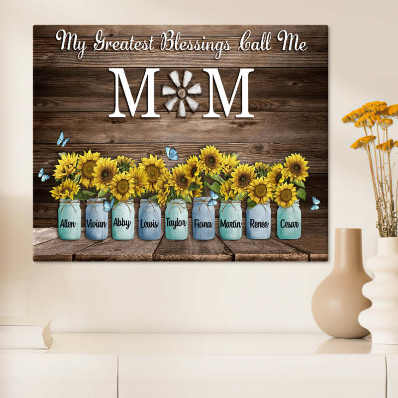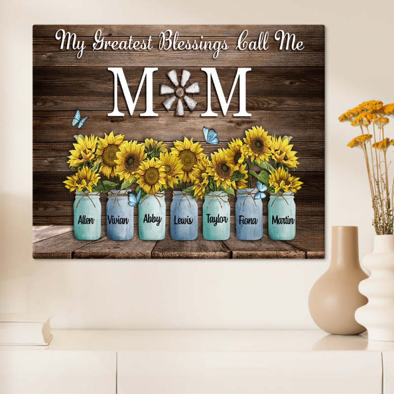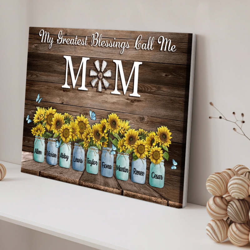 Personalized Name Sunflowers Canvas My Greatest Blessings Call Me Mom Wall Art Canvas Mother's Day Gifts