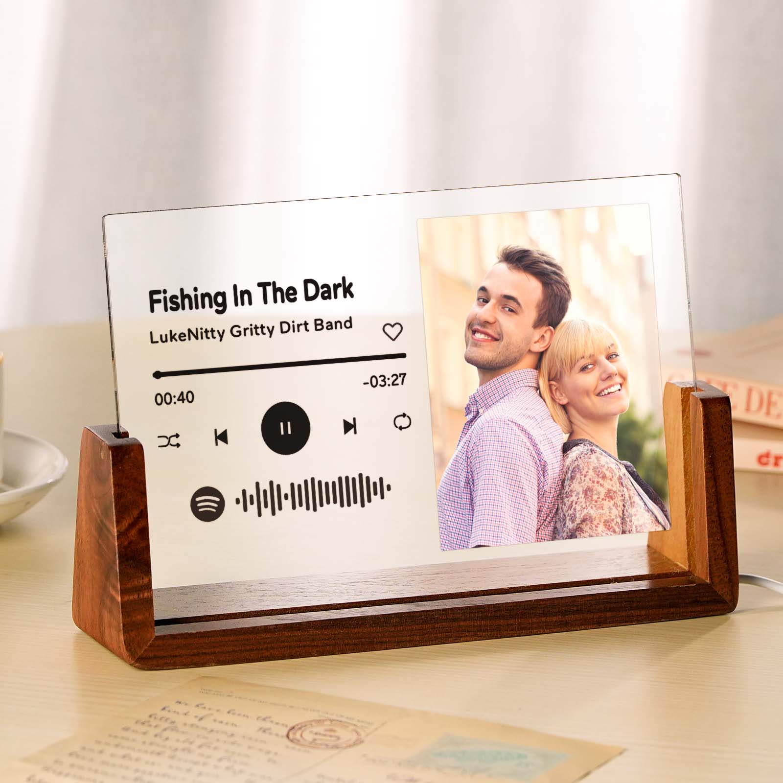 Illuminate your memories with this custom Spotify music code night light lamp, the perfect anniversary gift. Crafted from high-quality acrylic, this plaque features a personalized photo and a custom Spotify music code, allowing you to immortalize your favorite song and special moments. With its sleek design and soft glow, it adds a touch of warmth and nostalgia to any space. Whether it's a romantic gesture for your partner or a sentimental gift for a friend, this personalized lamp is sure to be cherished for years to come.