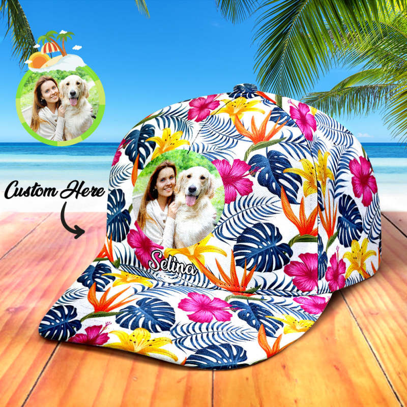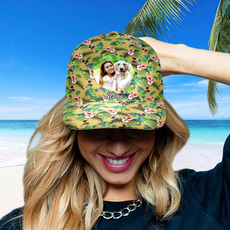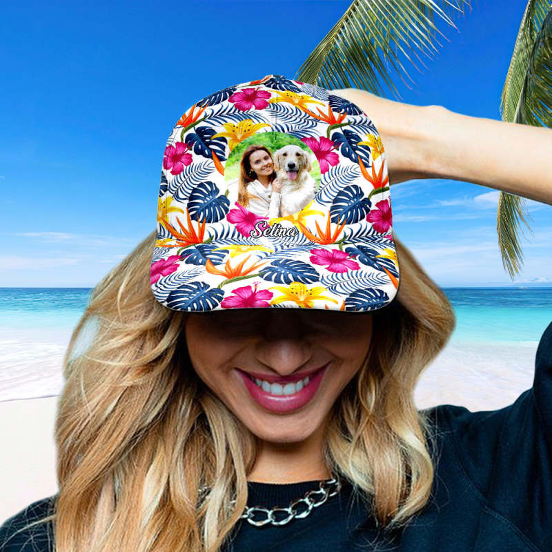 Personalized Photo and Name Hawaiian Style Baseball Cap Gifts for Her