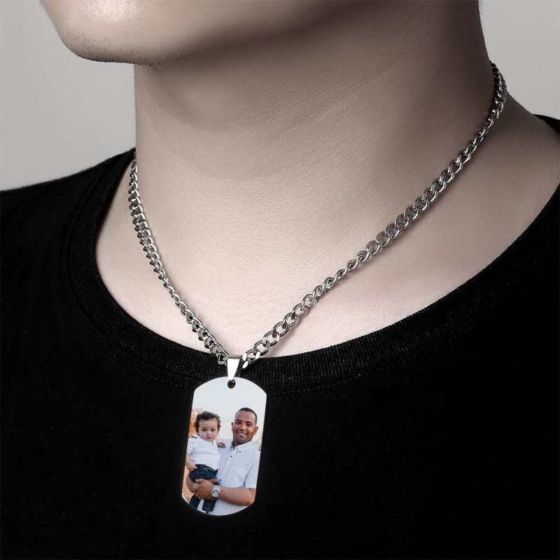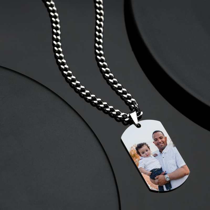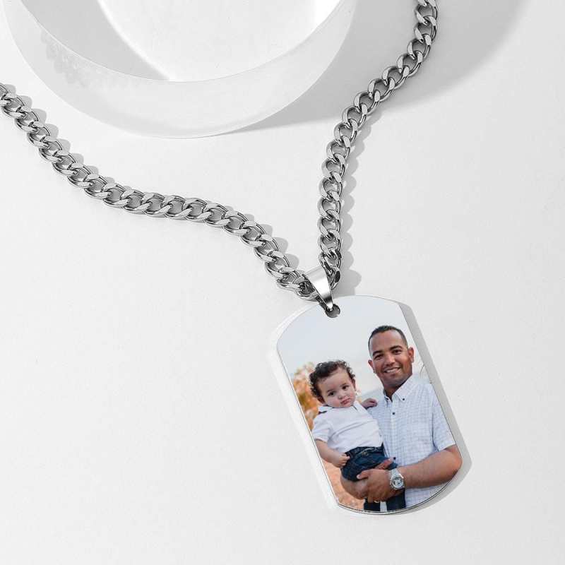 Personalised Photo Engraved Necklace Stainless Steel Gift for Dad