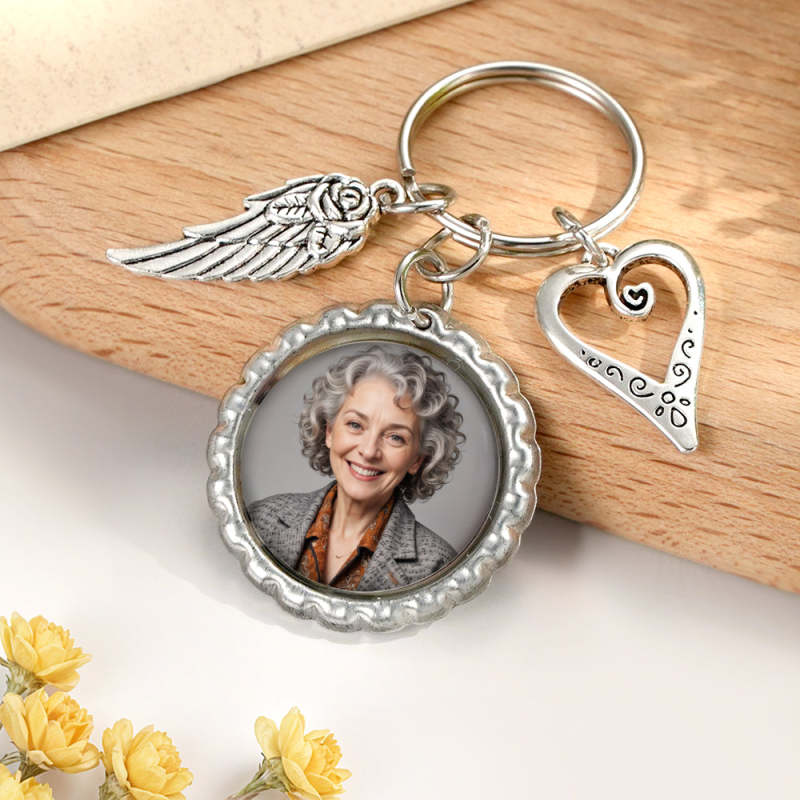 Personalized Photo Keychain with Text Heart Wing Keychain Memorial Gift
