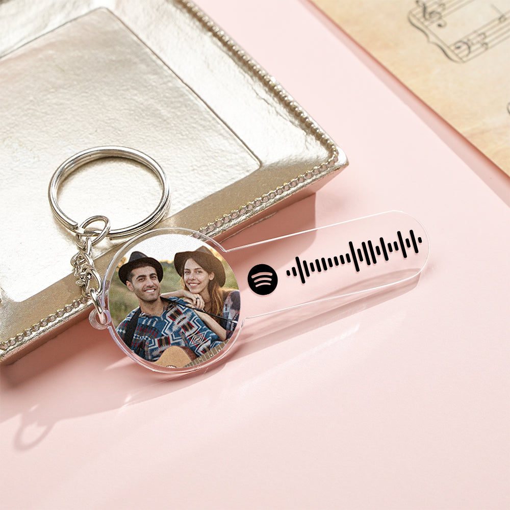 This unique accessory combines a cherished photo with a custom Spotify song code, allowing you to carry a piece of your heart wherever you go. Crafted from high-quality acrylic, the keychain is durable and stylish, perfect for daily use or as a thoughtful gift.