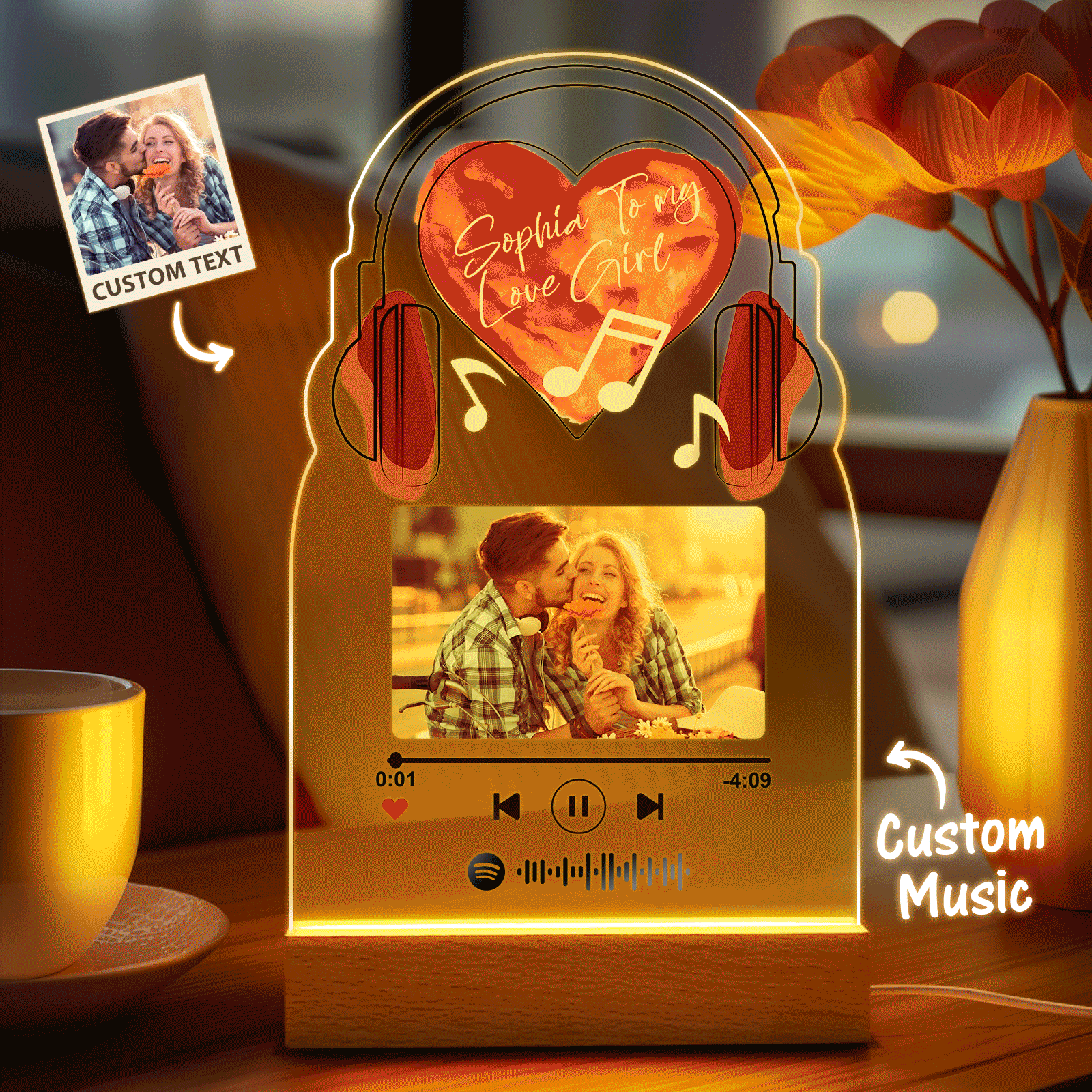 Personalized Romantic Love Music Acrylic Night Light Gift for Couple Home Decor