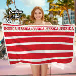 You can customize your name on the beach towel and choose a color to match it with classic stripes. Family members or friends can wrap themselves in unique styles and make their classic summertime look.