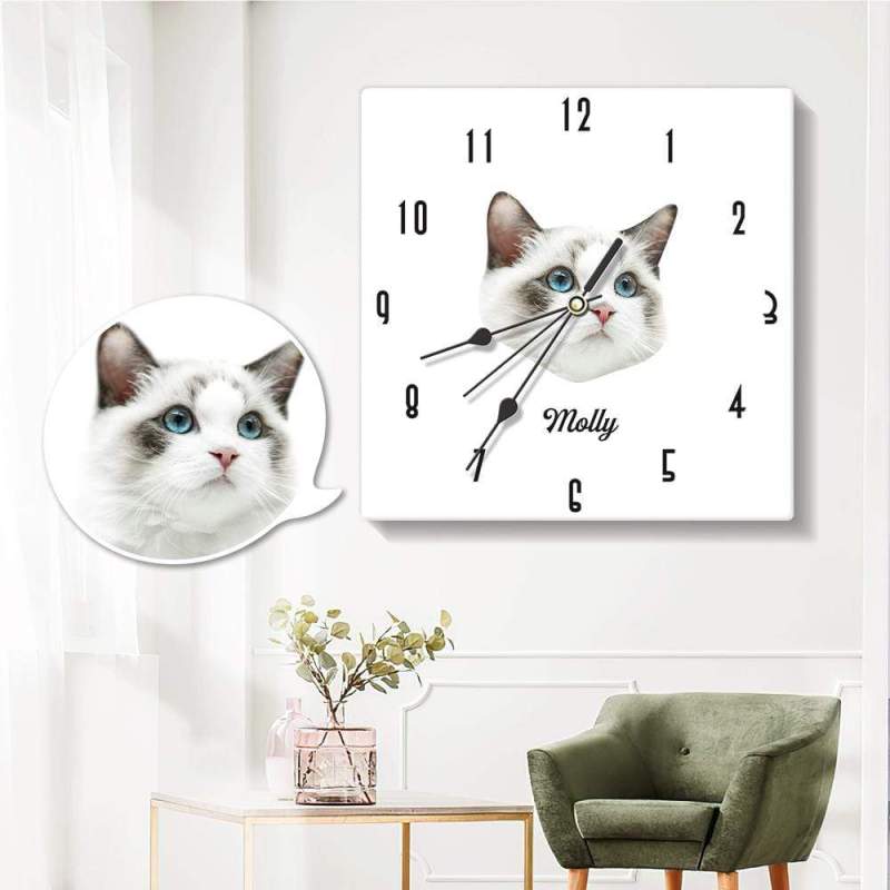 Personalized Wall Clock with Text Square Lovely Cat 7.87*7.87in