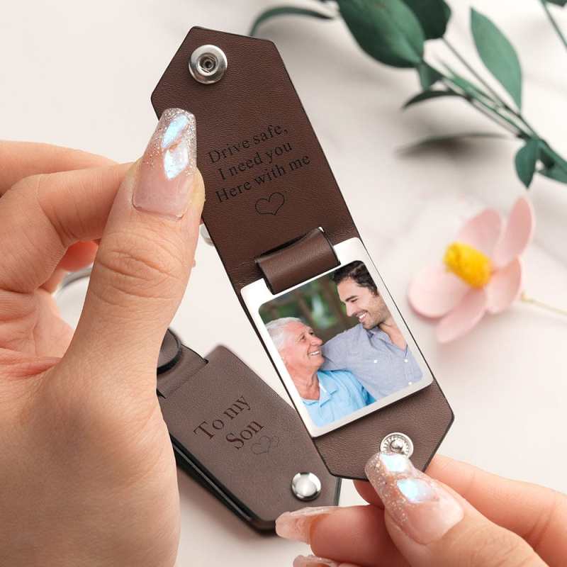 Drive Safe Keychain for Son Custom Leather Keyring with Text Gifts