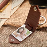 Photo Keychain Custom Leather Keyring with Text Gifts for Dad