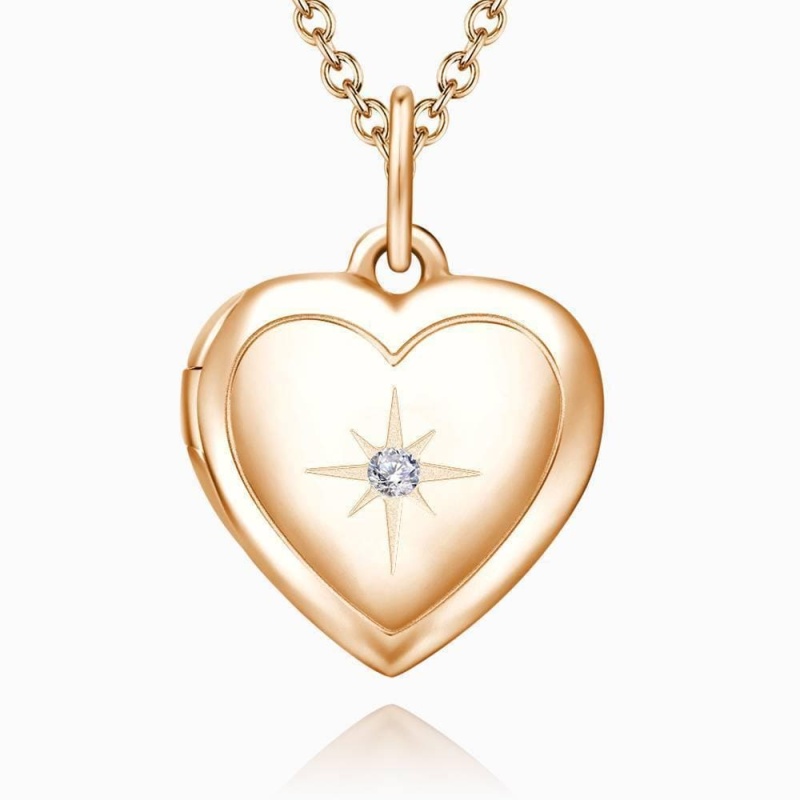 Photo Locket Necklace Gifts for Her Star Printing Rose Gold Plated