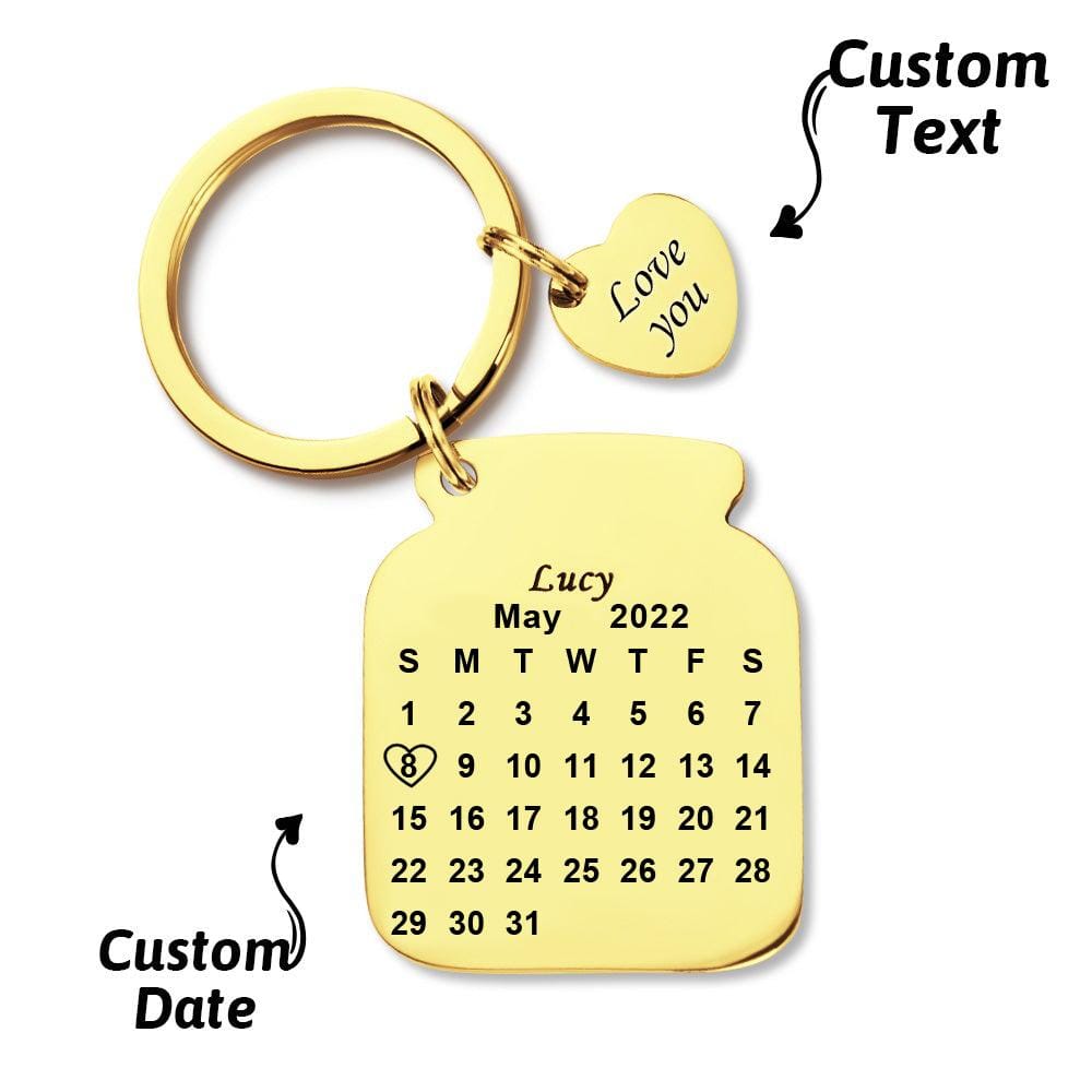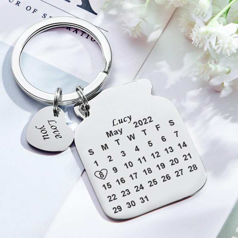 Custom Engraved Bottle Calendar Keychain Save The Date Keychain Mother's Day Gift