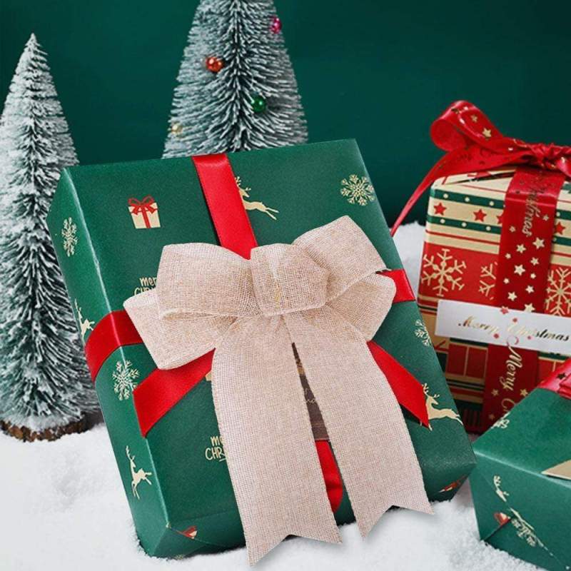 Christmas Gift Box Decorative Linen Bow For Xmas Gift Bow