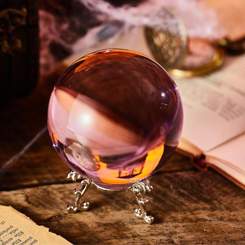 Rose Crystal Ball with Stand Pink Scrying Crystal Ball Healing Stone for Home Decor