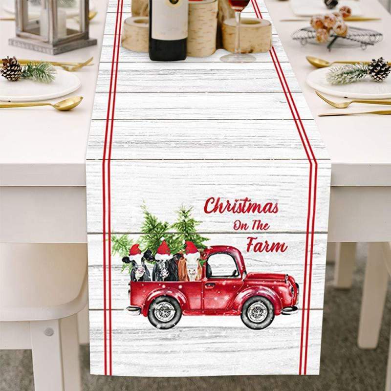 Rustic Christmas Table Runner Multi-size Christmas On The Farm Winter Gifts