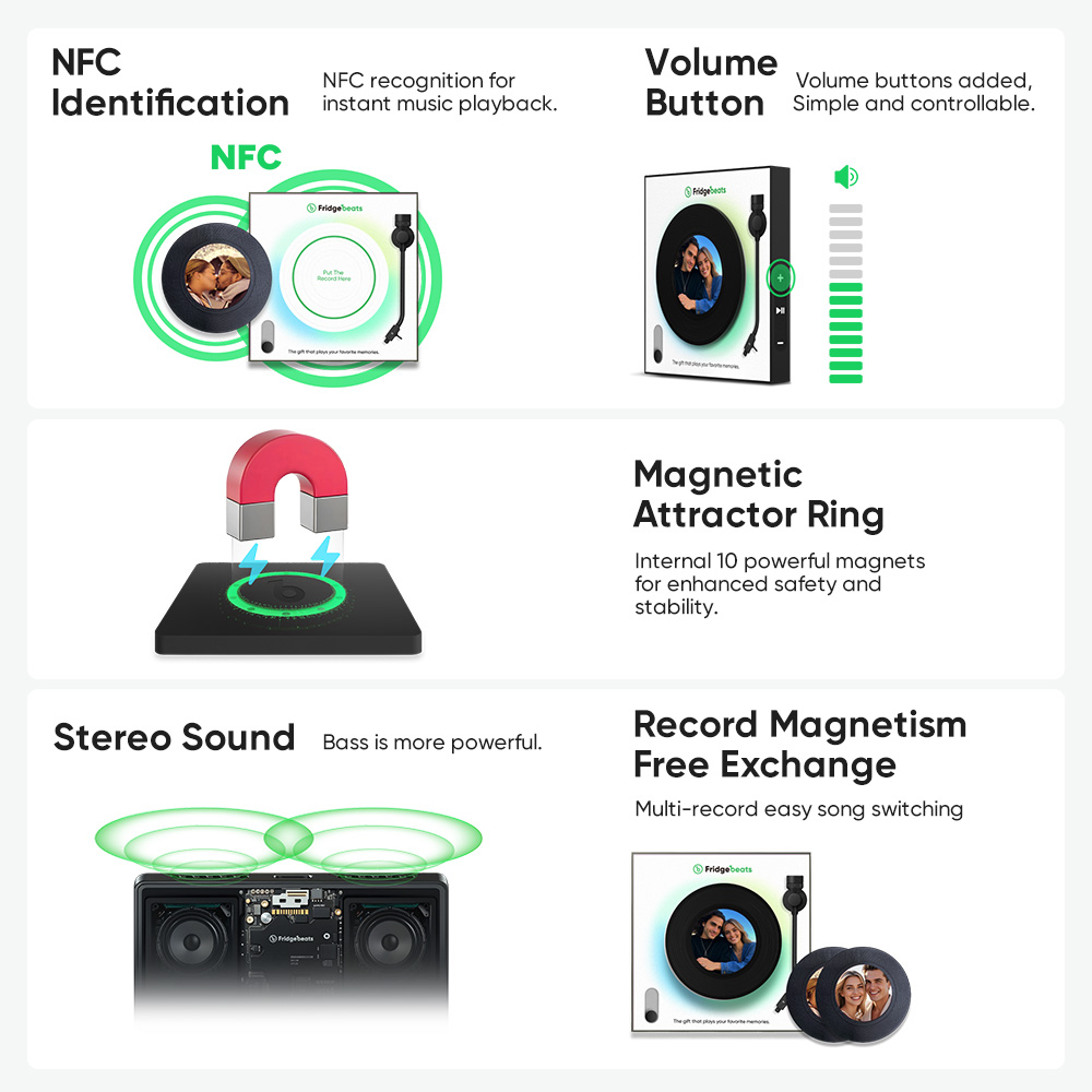 Upgraded Personalized Music Fridge Magnet That Play Songs Record Supports 1-6 Songs Gifts for Dad