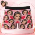 Valentine's Day Gifts Custom Big Face Boxer Shorts Colorful Waistband Pink Boxer Briefs Red and Pink Hearts Gifts For Him