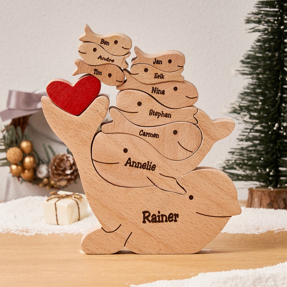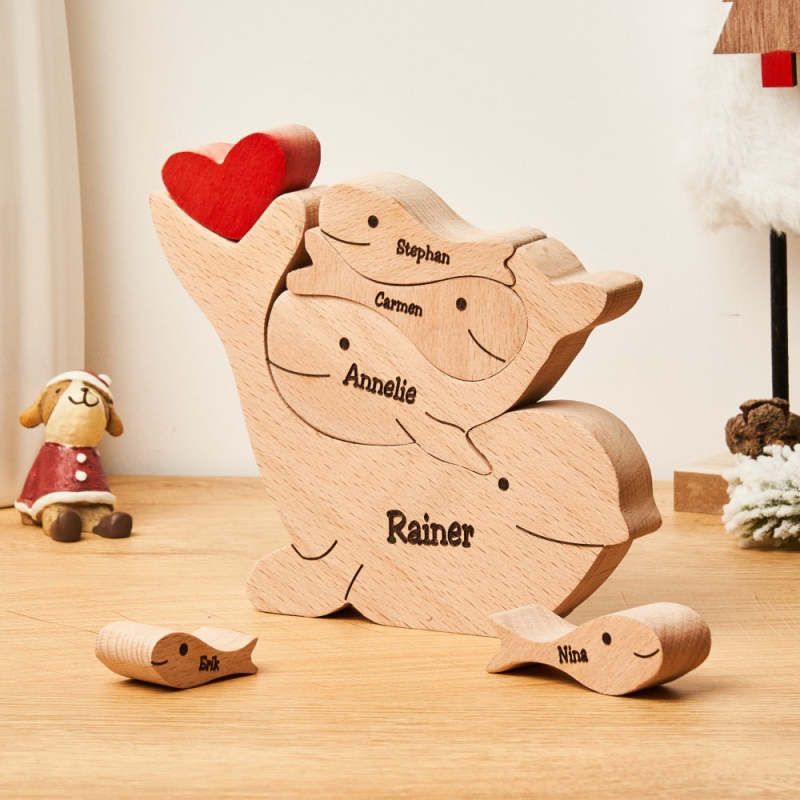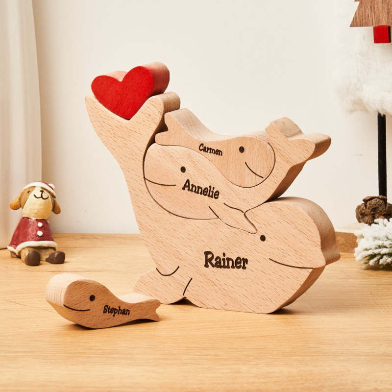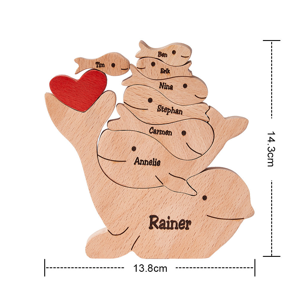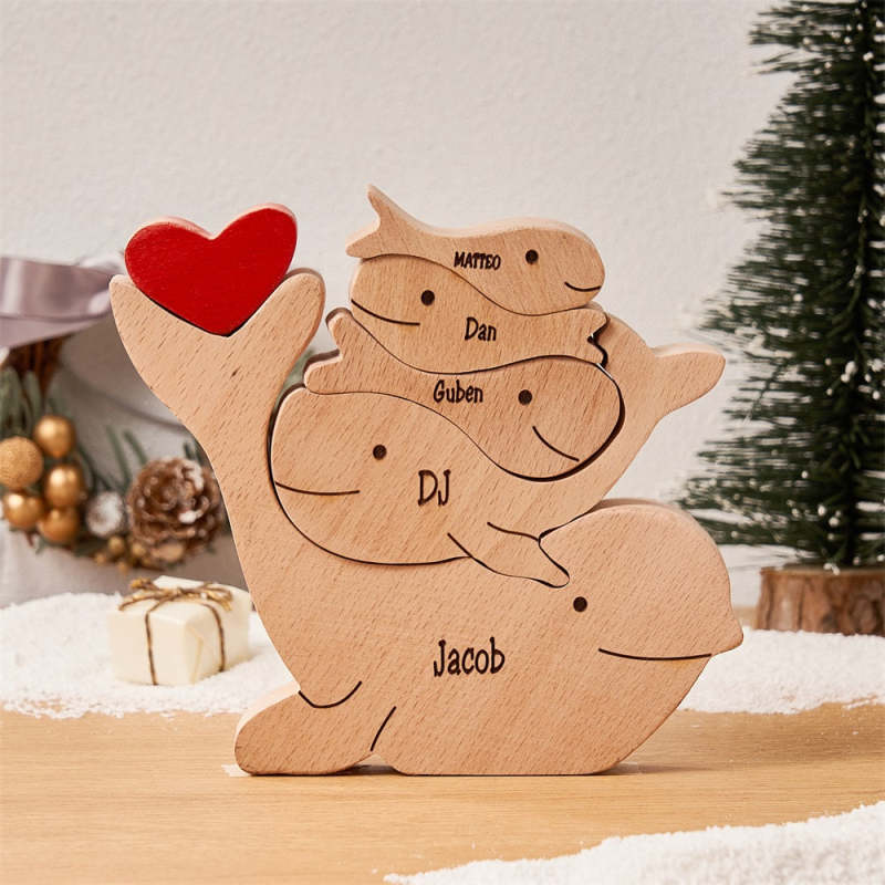 Valentine's Day Gifts Custom Names Wooden Dolphins Family Puzzle Home Decor