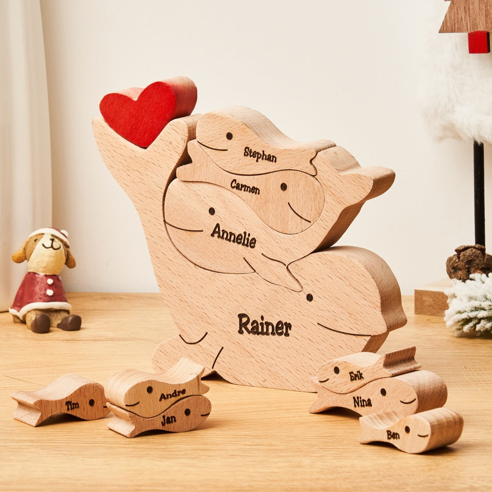 These wooden family puzzle are ideal for home, office and cafe decor. Each expertly shaped piece brings a special family member and their love to life, making it a great surprise gift for any celebration.