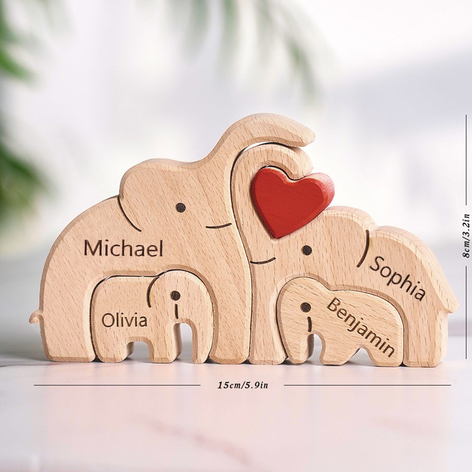 Valentine's Day Gifts Wooden Family Elephant Puzzle Custom Names Home Decor