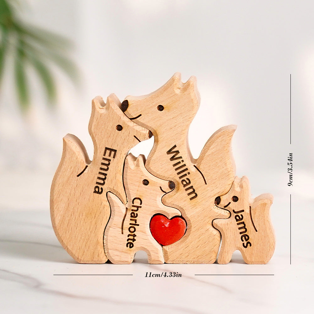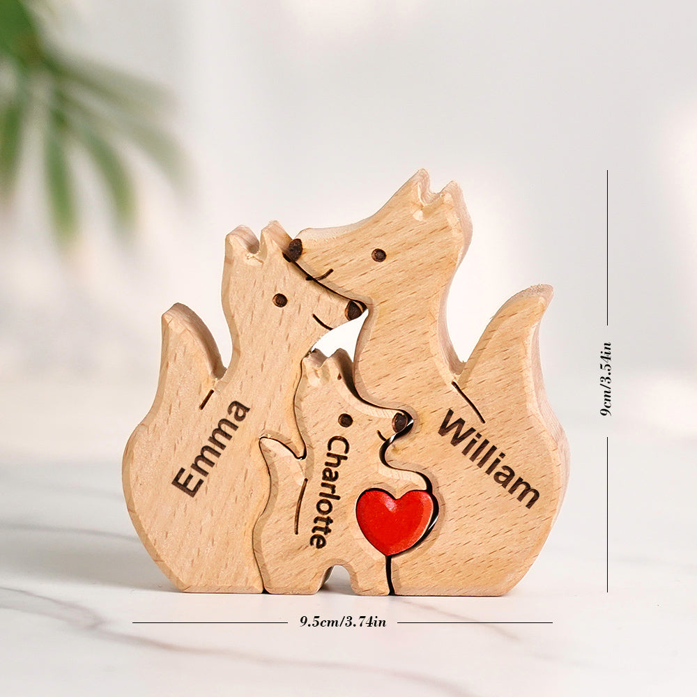 Valentine's Day Gifts Wooden Fox Family Puzzle Custom Names