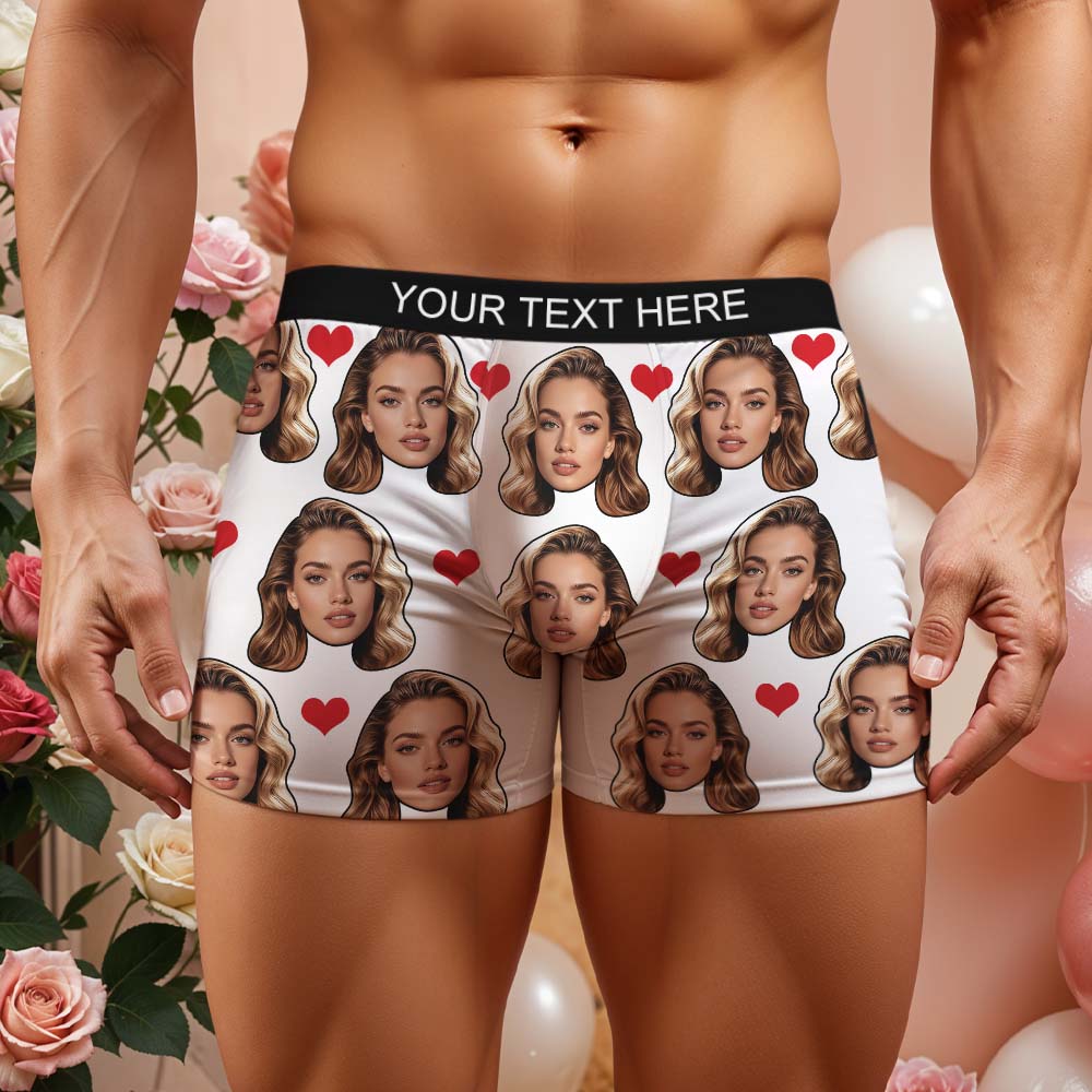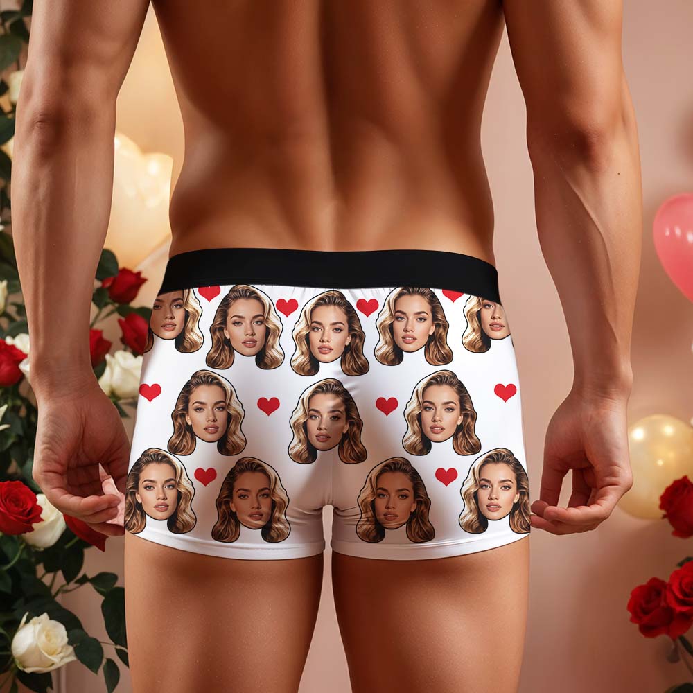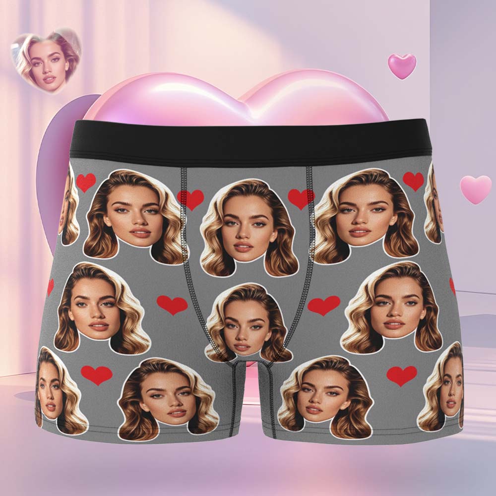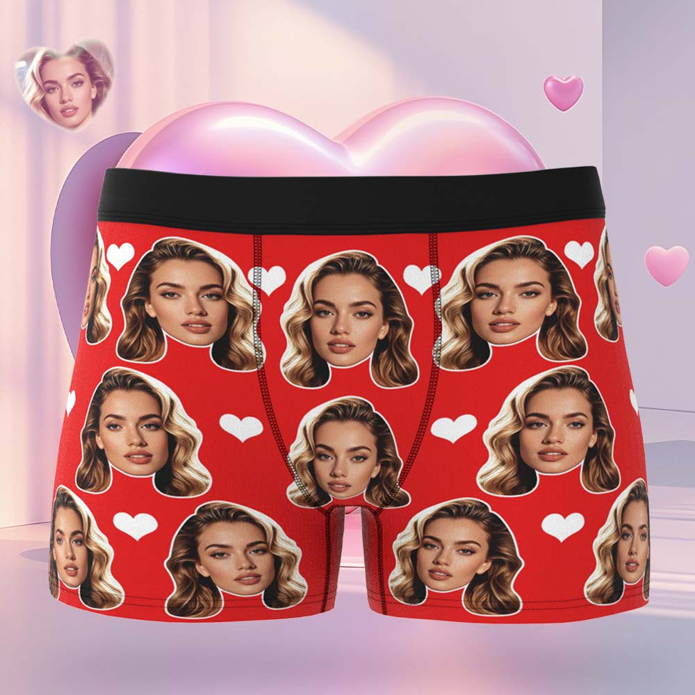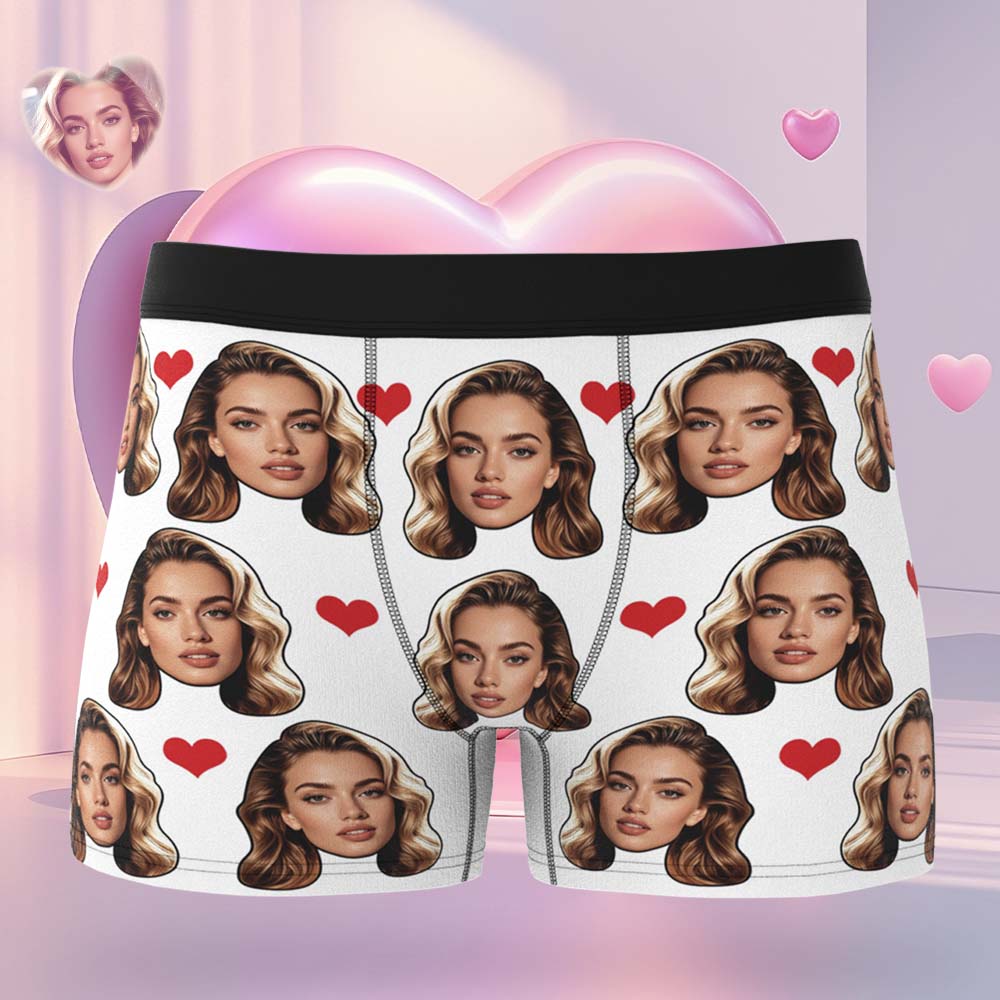 Gift For Men Custom Big Face Heart Boxer Shorts