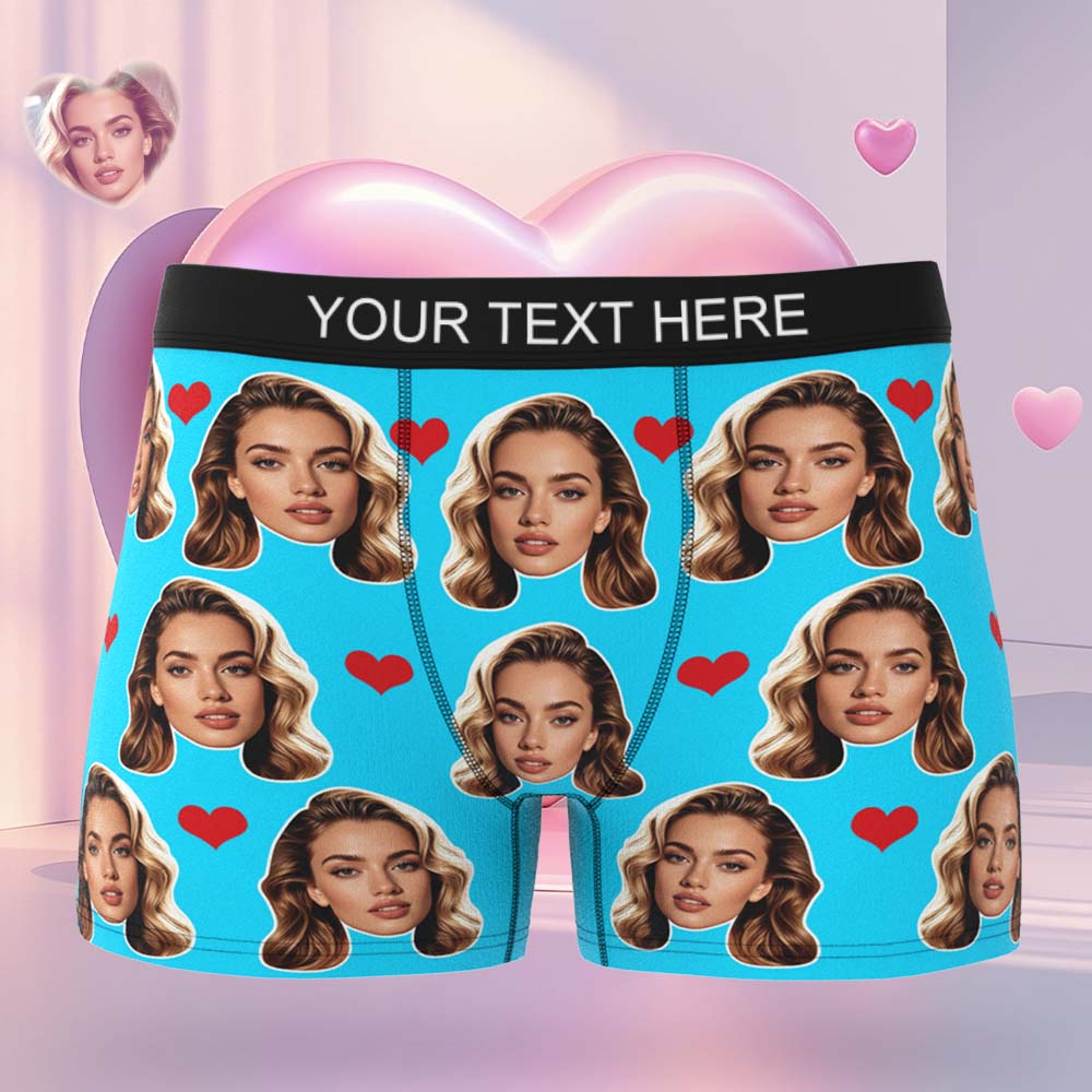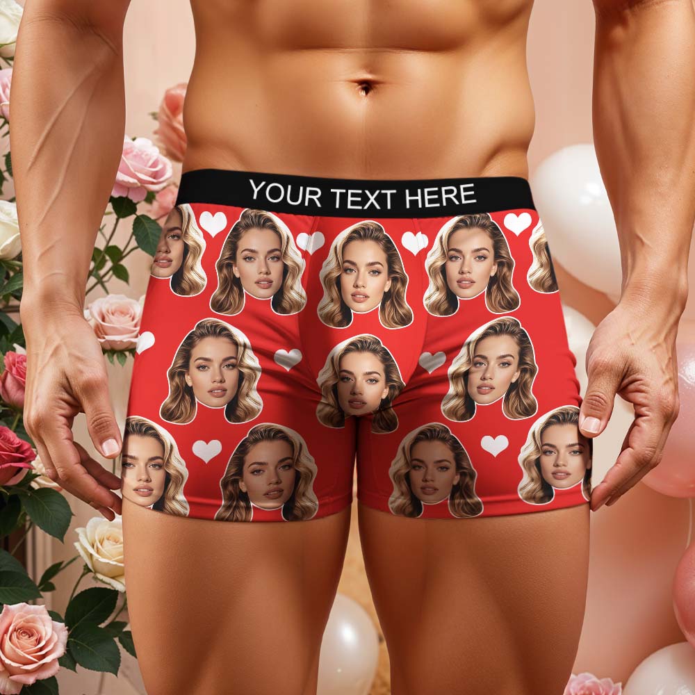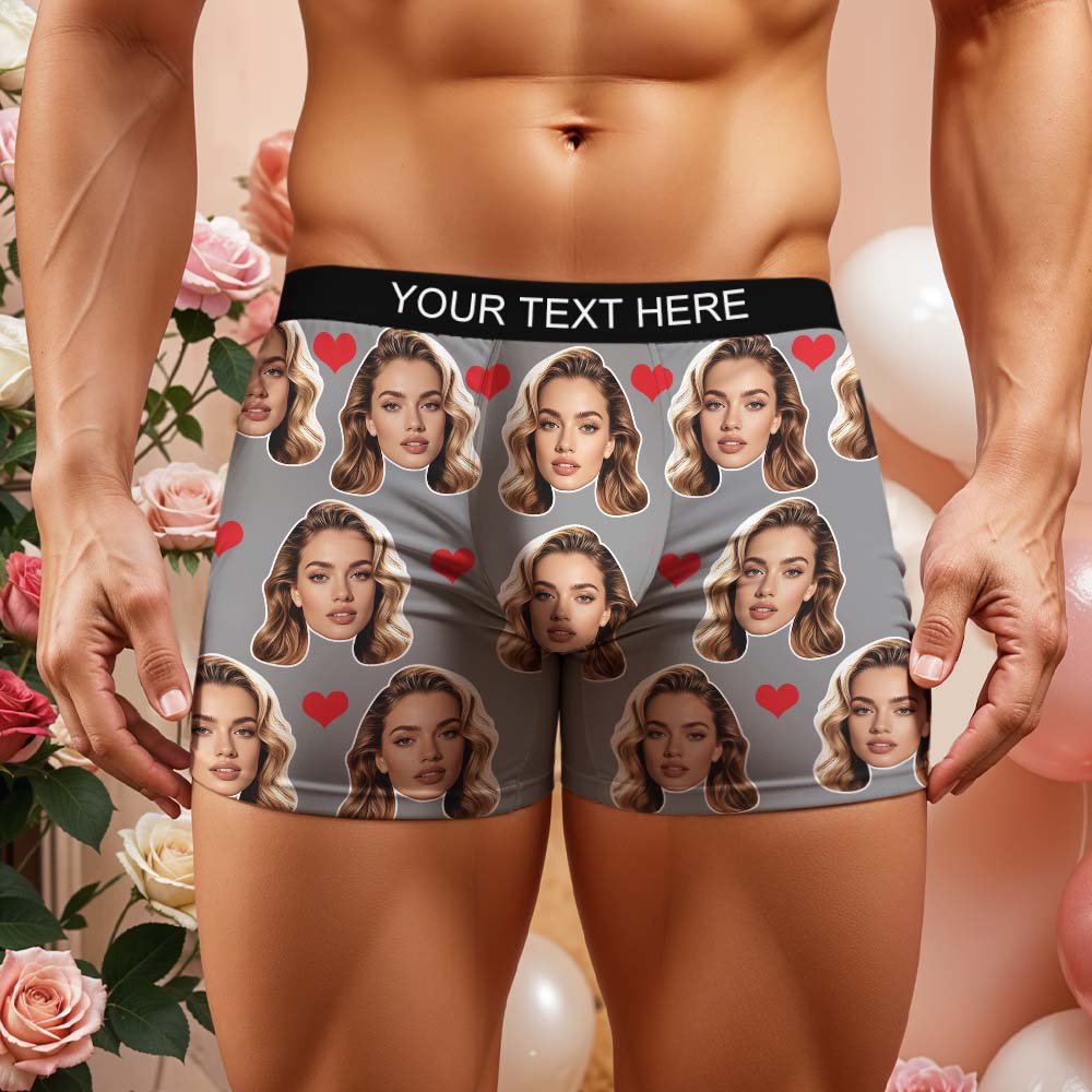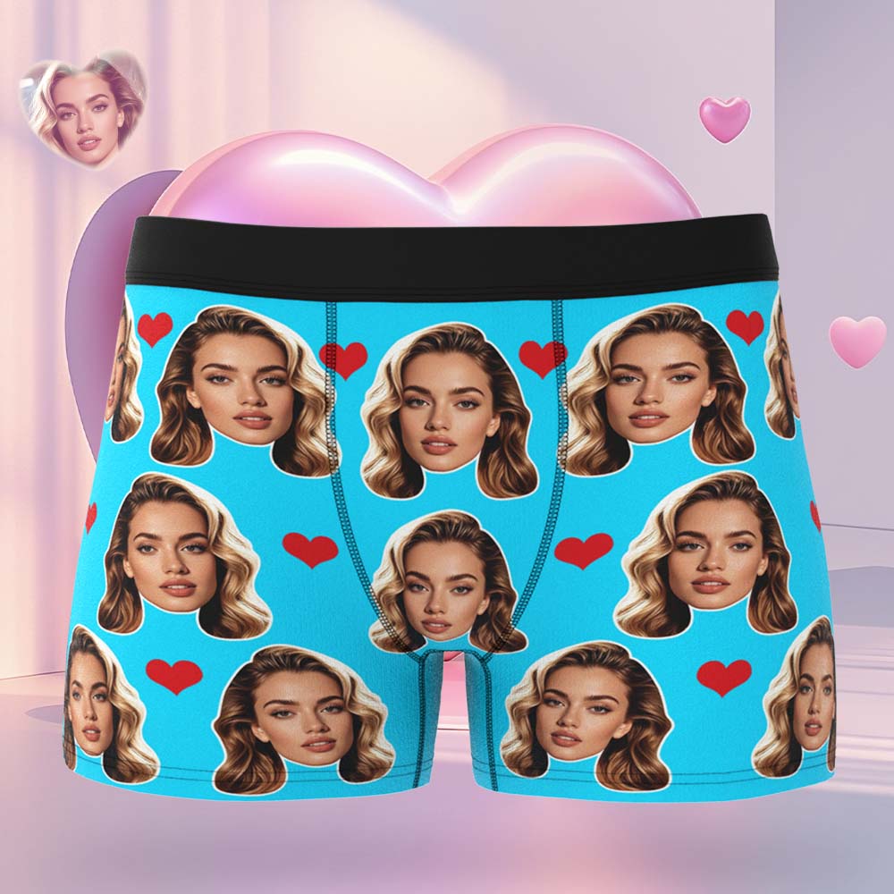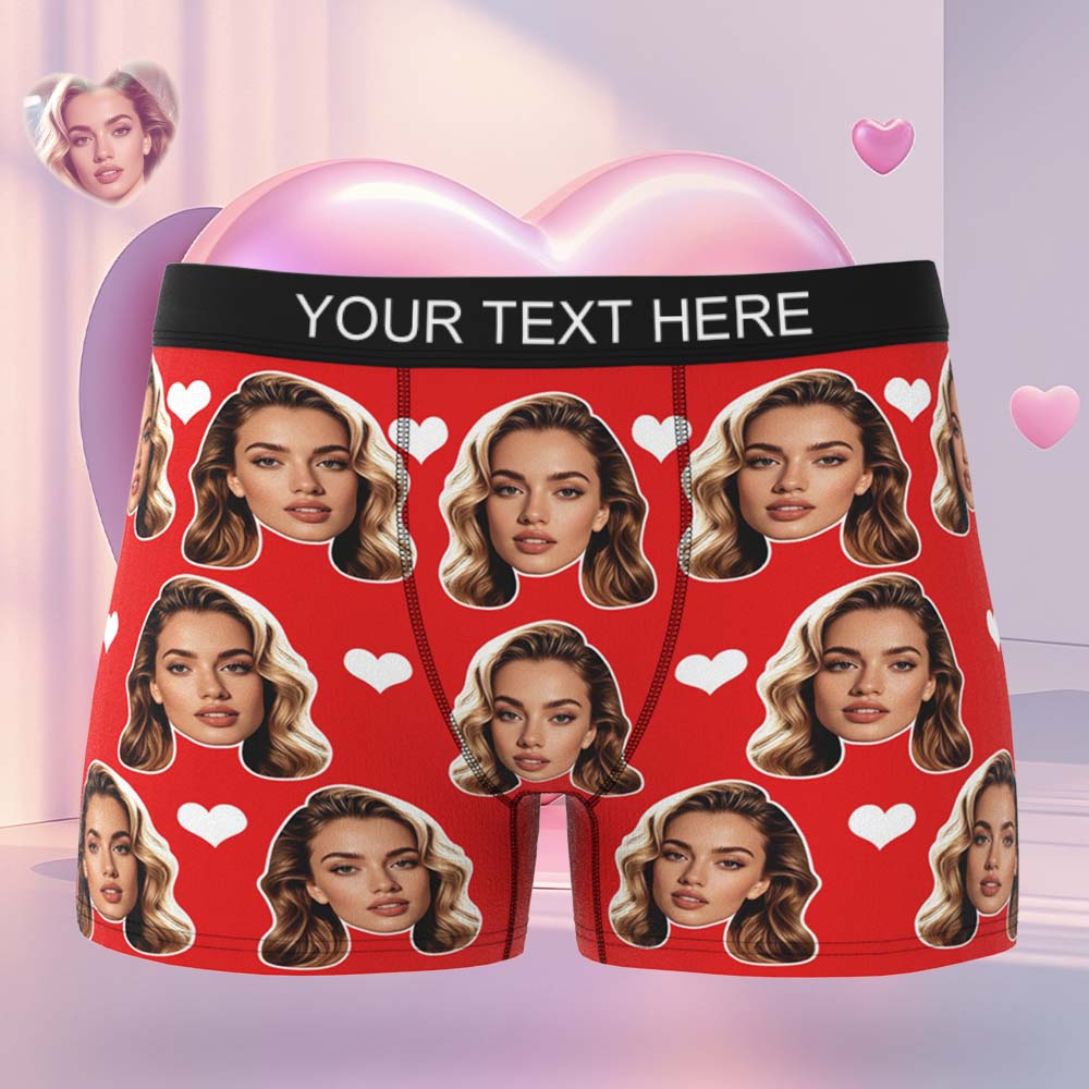 Gift For Men Custom Big Face Heart Boxer Shorts